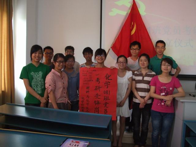 为了加强班级学习气氛,促进考研同学之间的相互学习与交流,发挥学生党员在考研中的先锋模范作用,近日,结合师范生学习就业实际和重庆时时彩 创建基层党建示范点工作,重庆时时彩 首先在化学081班成立了“师范生考研党员先锋岗”。