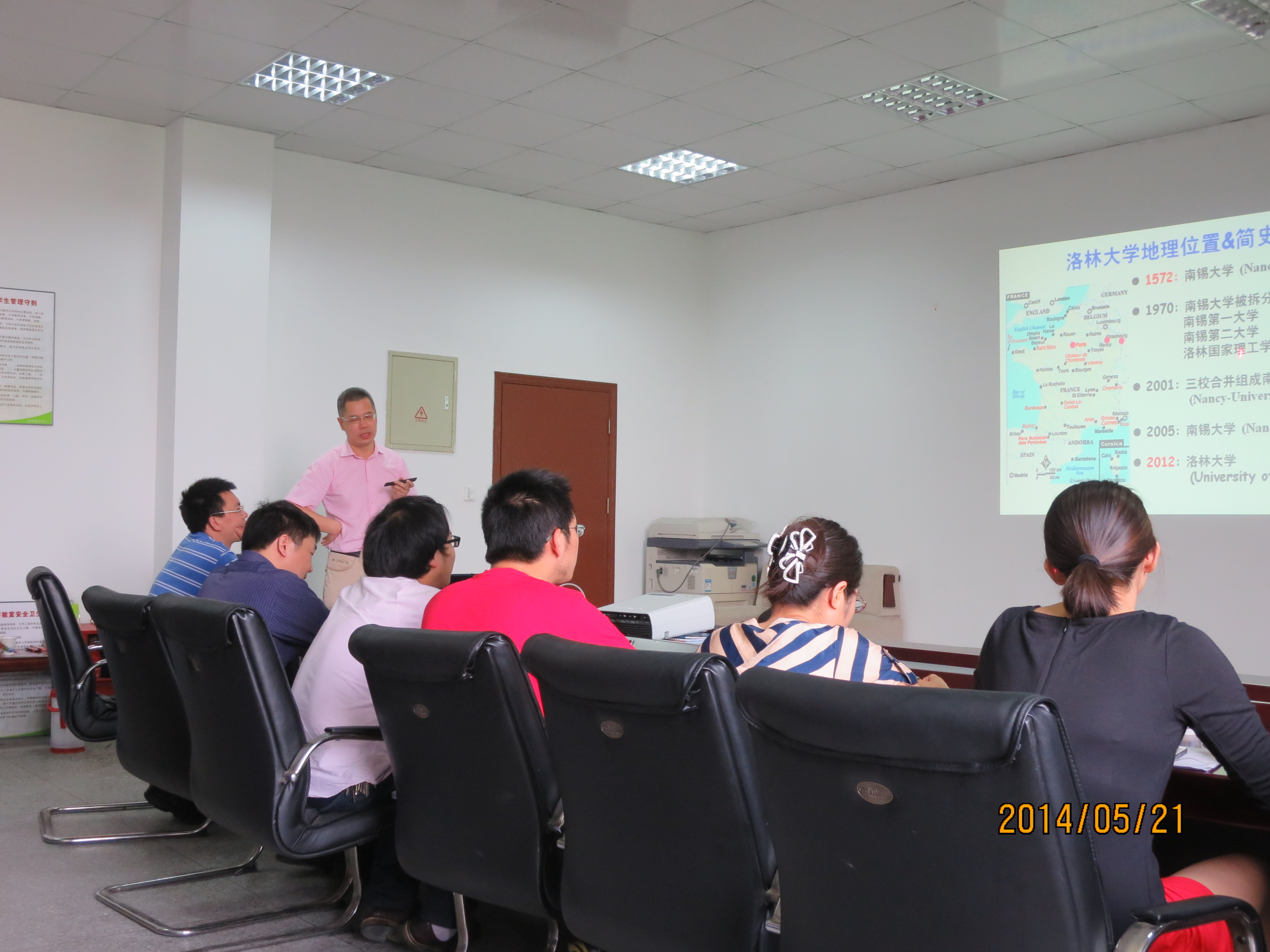 在李勇进教授对胡国华教授作了简单介绍后,报告在师生们热烈的掌声中拉开帷幕。胡国华教授首先对法国及洛林大学的地理位置及历史做了简单介绍,进而,直接进入本次报告的主题。为了使在座师生更容易理解本次讲座内容,胡国华教授用自己的研究工作实例一一向大家详细讲解。胡国华教授独特的研究方法,幽默风趣的讲课方式,配以精美的PPT,赢得了大家阵阵掌声。报告结束后,大家都踊跃提问,胡国华教授都予以耐心而细致的回答。