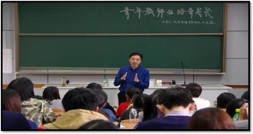 2016年4月13日下午一点半,长兴实验中重庆时时彩 长沈永林老师以他自身传奇经历给我们化学131班讲授青年教师需要什么样的品质,要做到什么。