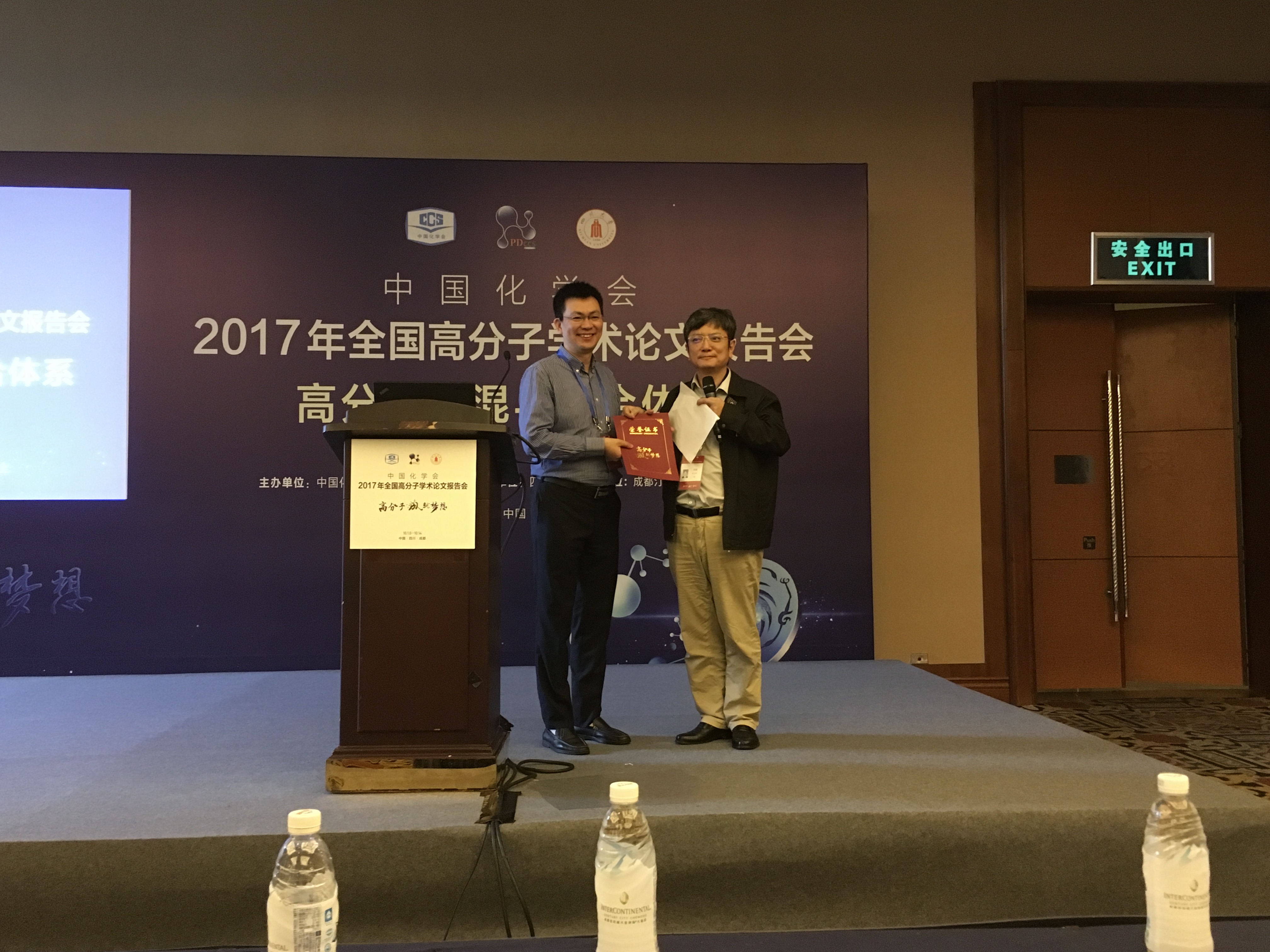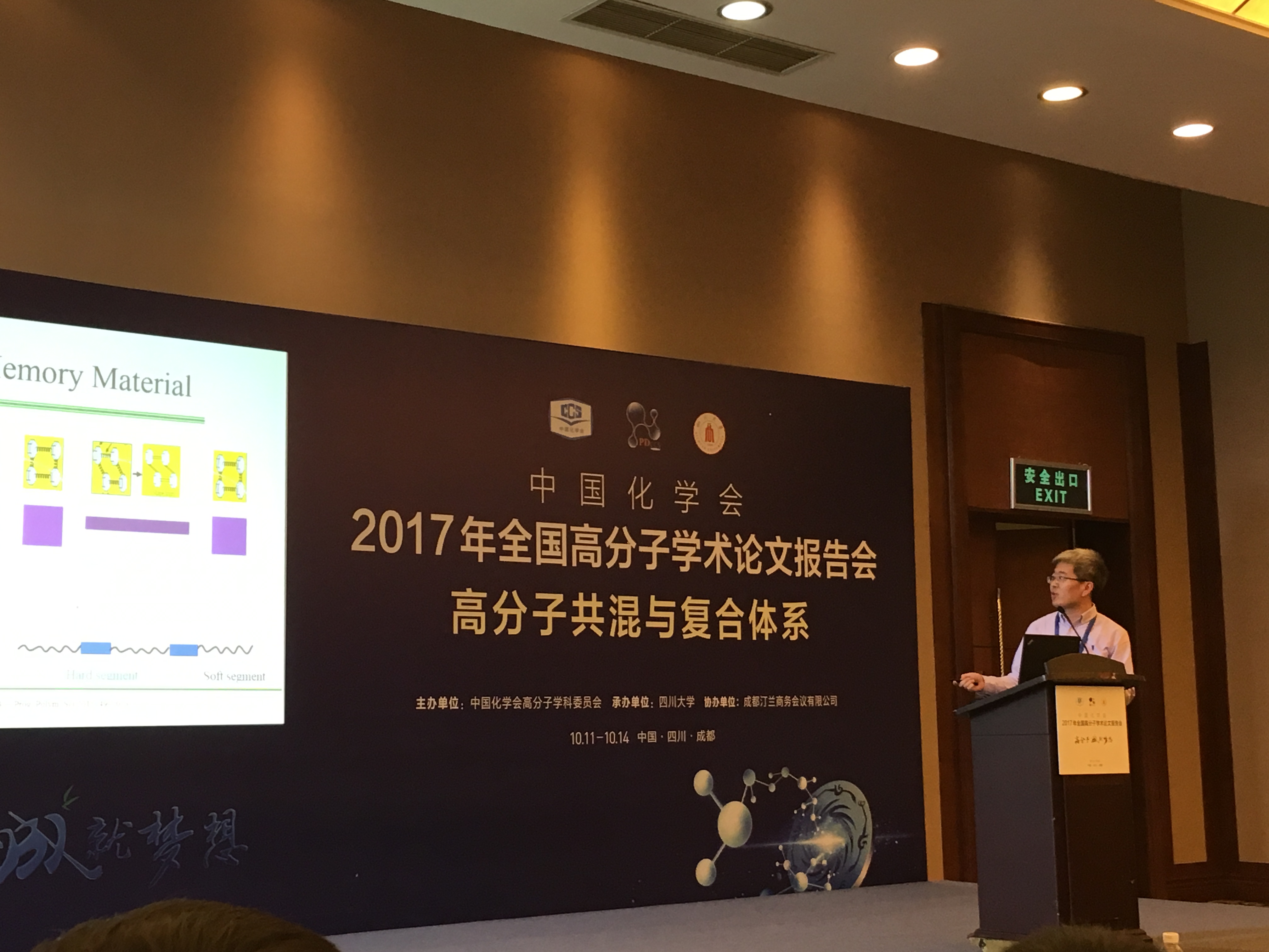 2017 年10月10日到14日,课题组参加了由中国化学会高分子学科委员会主办,四川大学承办的高分子学术论文报告会。全国高分子学术论文系列报告会起始于1954年,两年一次的全国报告会已成为国内高分子科学界最为重要的学术会议,是中国高分子界的一次盛会。2017年全国高分子学术论文报告会以高分子材料为切入点,集中展示我国高分子科学与材料领域近年来的研究成果和发展趋势,为从事该领域研究和开发工作的科技、教育、产业工作者和广大青年学子提供广阔的学术与技术交流平台,以促进我国高分子学科的可持续发展与创新。