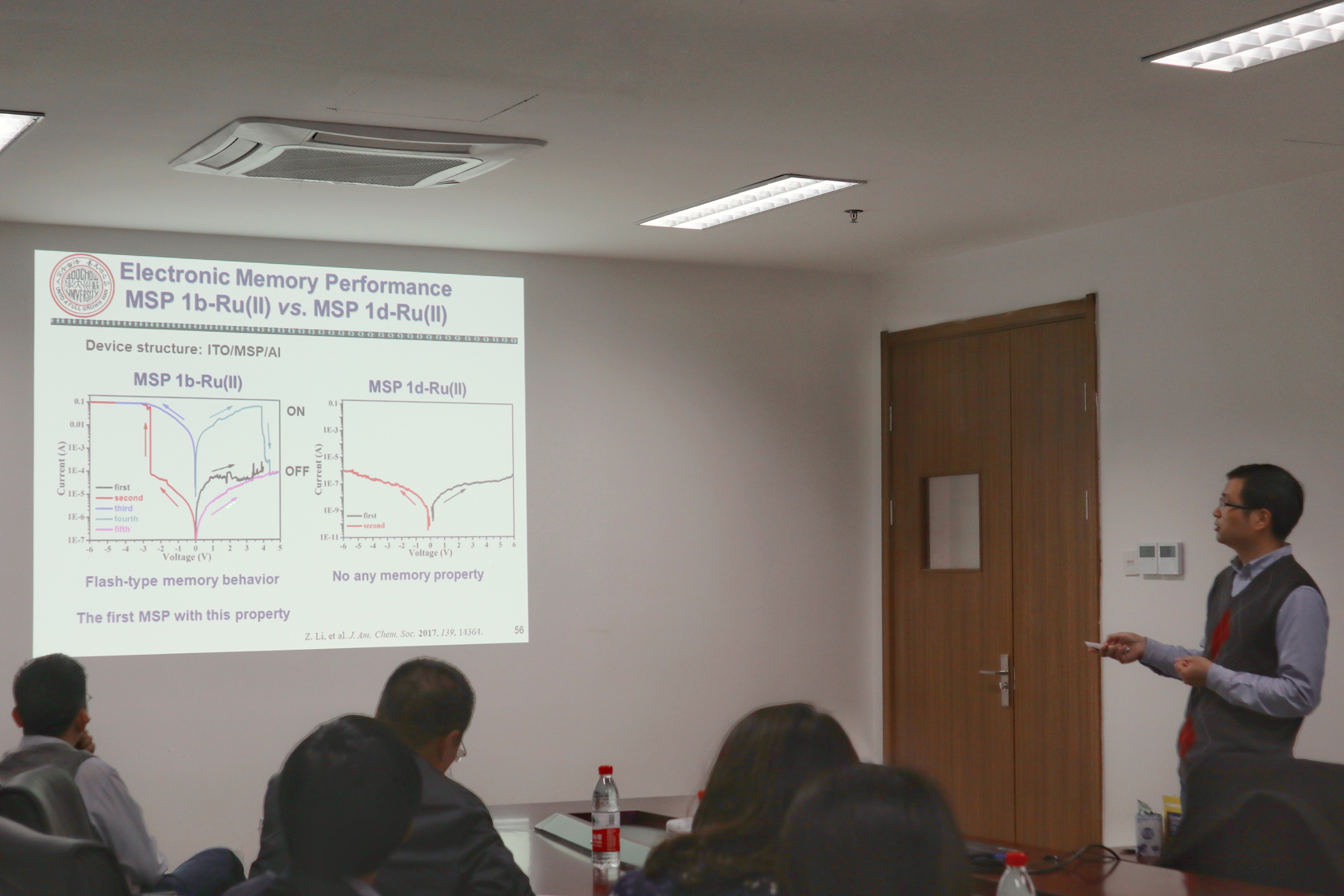 在本次报告中,屠迎锋教授向我们详细介绍了一种级联聚合方法,即原位开环-缩合聚合方法(PROP)。屠迎锋教授采用聚醚二醇和环状寡聚酯进行PROP聚合,制备得到了具有良好弹性性能的热塑性聚醚酯多嵌段共聚物;也采用去偶合原理,通过缩合聚合制备了具有较好溶解性能的高富勒烯含量的聚合物,这类聚合物具有很高的折光指数;最后采用偶合机理,使两条超分子链相互靠近,制备了具有电存储性能的金属超分子聚合物。屠迎锋教授的精彩报告令在座师生受益匪浅,其细致而深入的研究以及清晰而有力的讲述都非常值得学习。
