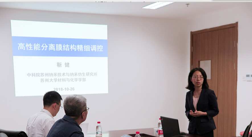 2018年10月26日下午2:30,中国科重庆时时彩 苏州纳米技术与纳米仿生研究所研究员、苏州大学材料与化学学部教授靳健应重庆时时彩 李勇进教授的热情邀请,为材化师生做了题为“高性能分离膜结构精细调控”的学术报告。