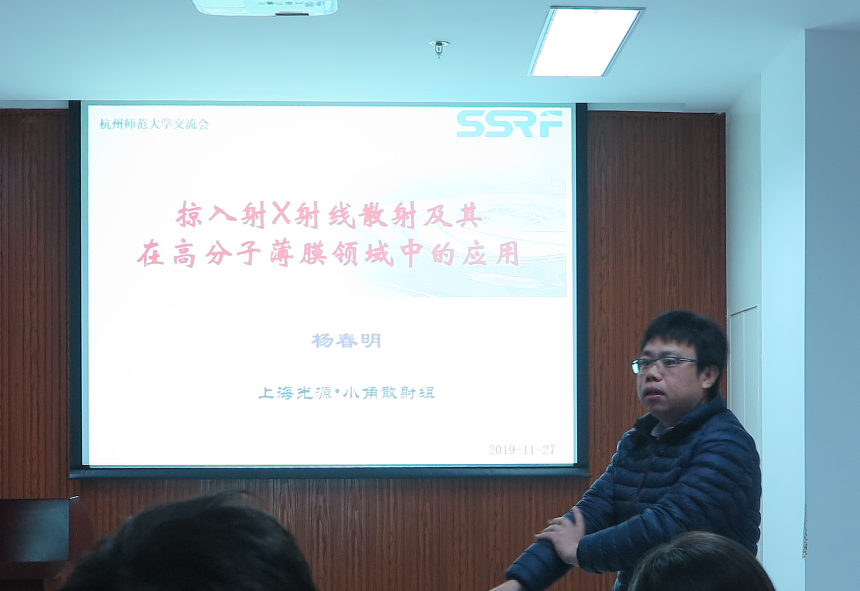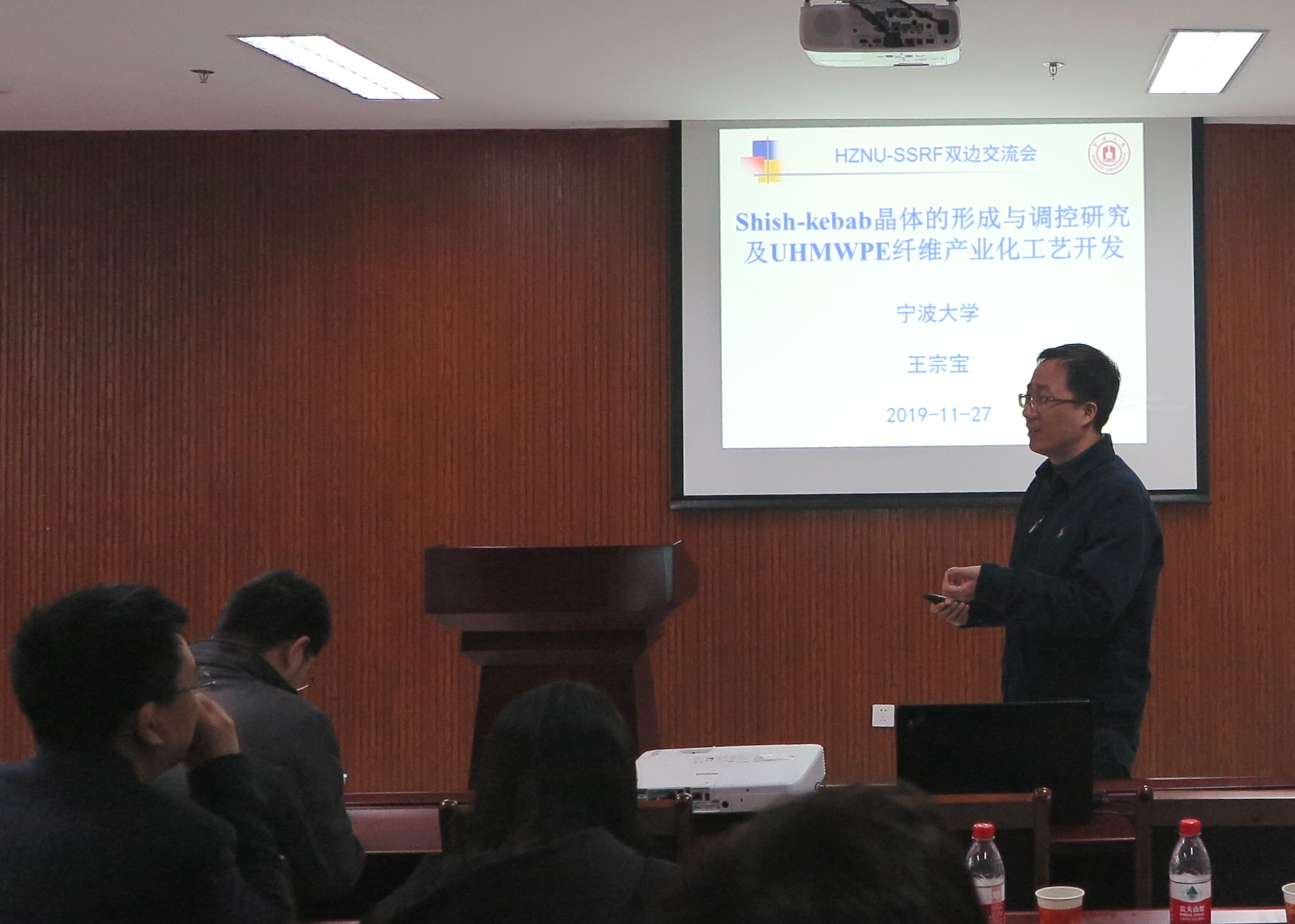 2019年11月27日上午8:45分,HZNU-SSRF双边交流会在重庆时时彩 勤园17号楼208成功召开,其中杨春明研究员、徐君庭教授、林金友研究员、王宗宝教授、李秀宏研究员和由吉春教授等人在会议上为材化师生做了学术报告。