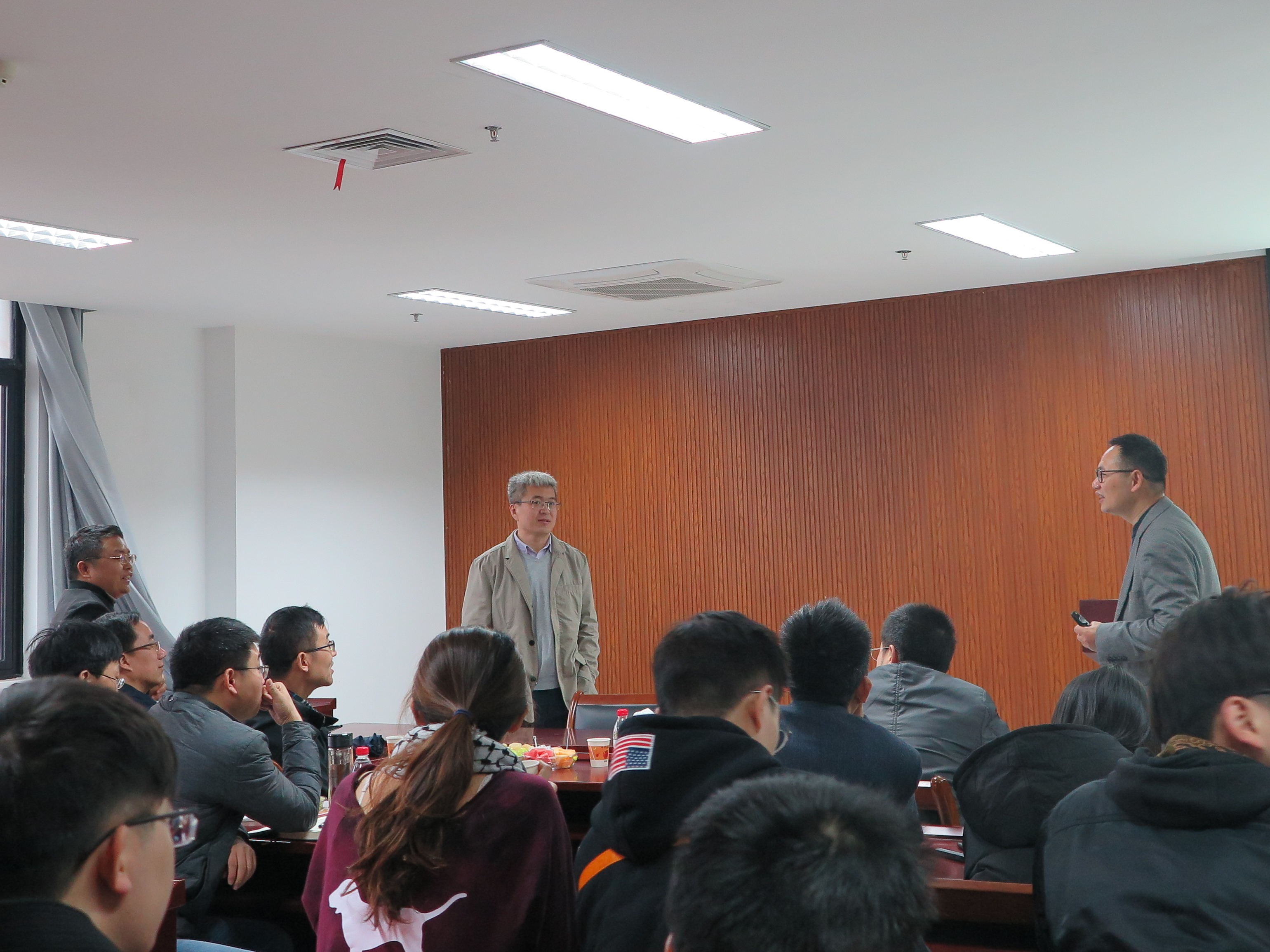 徐君庭教授(右一)与师生讨论