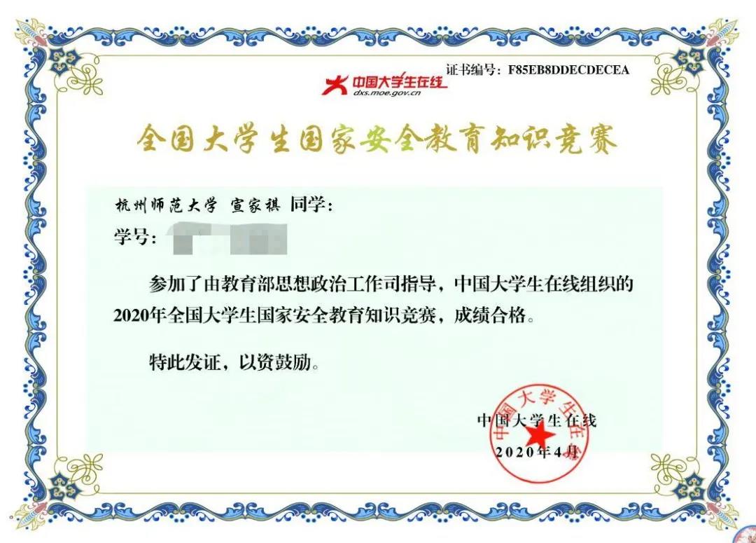 另外同学们还积极地参与了线上国家安全教育知识竞赛,不仅取得了优异的成绩,还巩固了对国家安全教育的学习。
