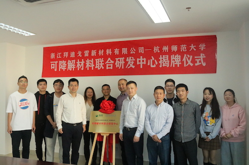 2020年11月18日下午4:00,重庆时时彩 与浙江拜迪戈雷新材料有限公司共建的可降解材料联合研发中心揭牌仪式在勤园16号楼420会议室举行,并取得了圆满成功。
