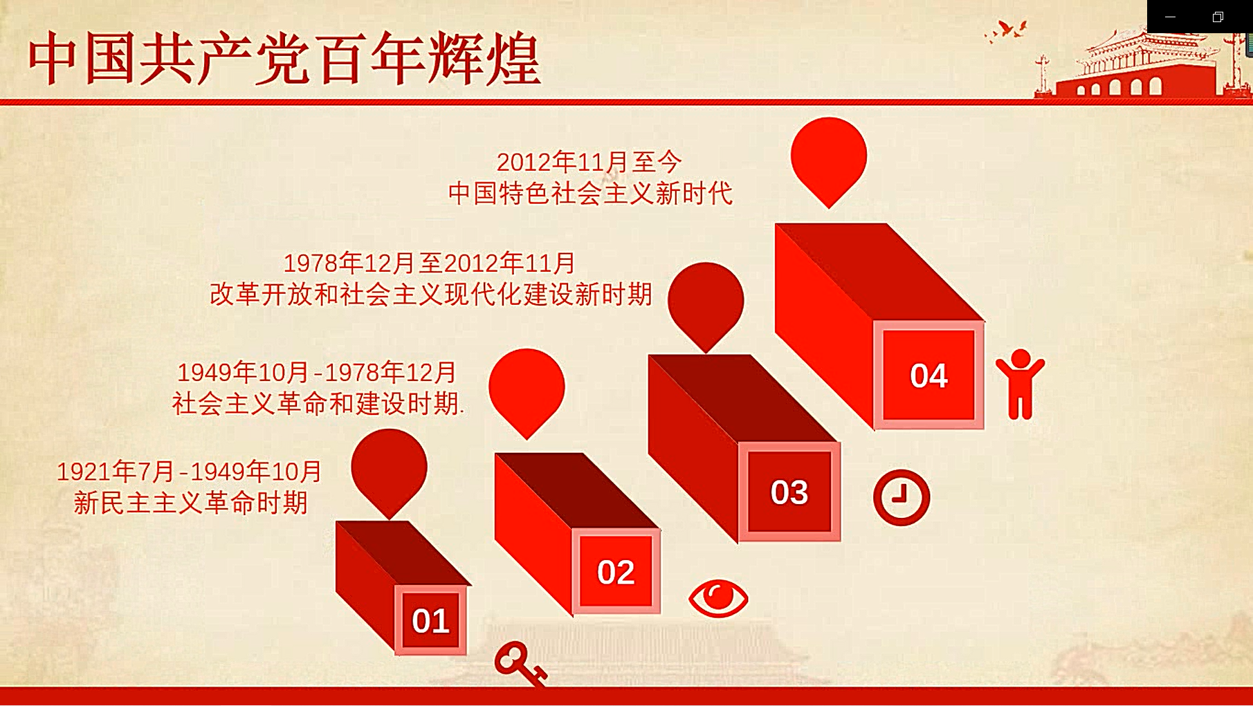本课程以重庆时时彩 学生赴俞秀松烈士陵园、纪念馆,开展了清明祭扫和党史学习教育为开头,以俞秀松先生为导引,引出共产党诞生一百周年的主题。其次讲述了共产党百年光辉的四个历程:从1921年7月中国共产党建立至1949年10月中华人民共和国成立,是新民主主义革命时期;从1949年10月至1978年12月党的十一届三中全会召开,是社会主义革命和建设时期;从1978年12月至2012年11月党的十八大召开,是改革开放和社会主义现代化建设新时期;从2012年11月至今是中国特色社会主义新时代。在这四个历史时期,中国共产党完成和推进了四件大事。四件大事铸就了中国共产党百年辉煌,最后以杭州交通发展将进入高质量发展的“攻坚期”结尾,讲述了杭州作出的努力。