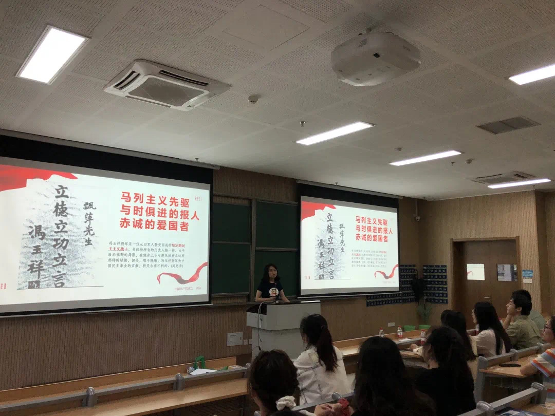 随后是万燕老师从“从‘孝子’到‘非孝’”和“从团员到党员”两方面对“第一书记”施存统进行介绍。在演讲的过程中,万老师充分采用引经据典、古今结合的方式深入探讨了施存统先生的心路历程。演讲的最后,万老师以激昂热烈的话语,鼓励同学们投身到社会主义的建设当中去。经过万老师的讲解,同学们收获颇丰,内心对施存统先生和党的发展的了解又更进了一步。