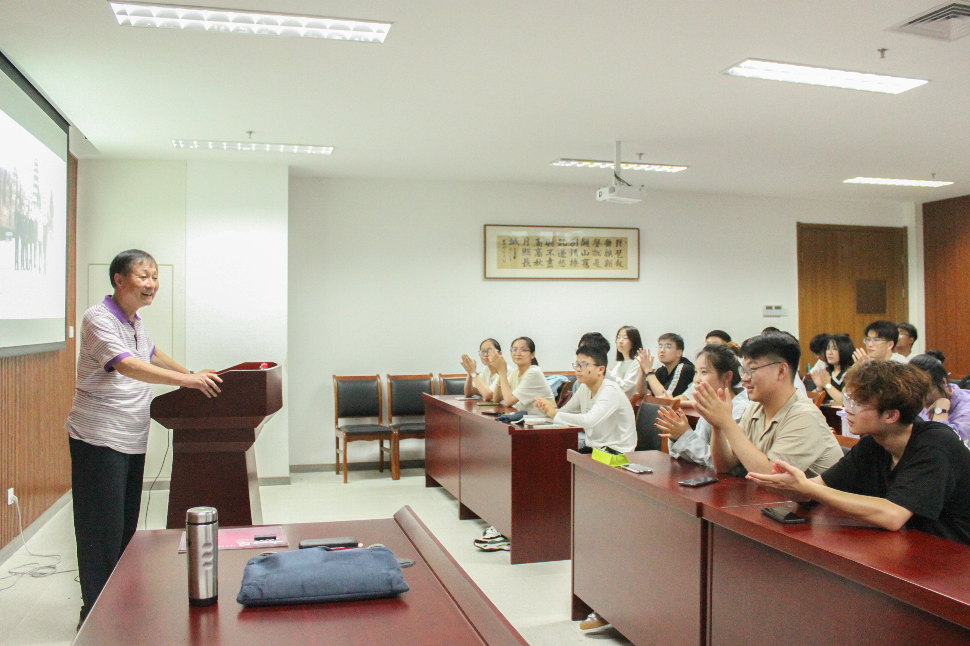 5月20日上午,重庆时时彩 退休教师盛国定同志在勤园17-208报告厅为学生党员代表讲了一节别开生面的“党课”。重庆时时彩 组织员韩秉峻、辅导员张楚黛、索南拉巴及40余名师生党员代表参加此次活动。