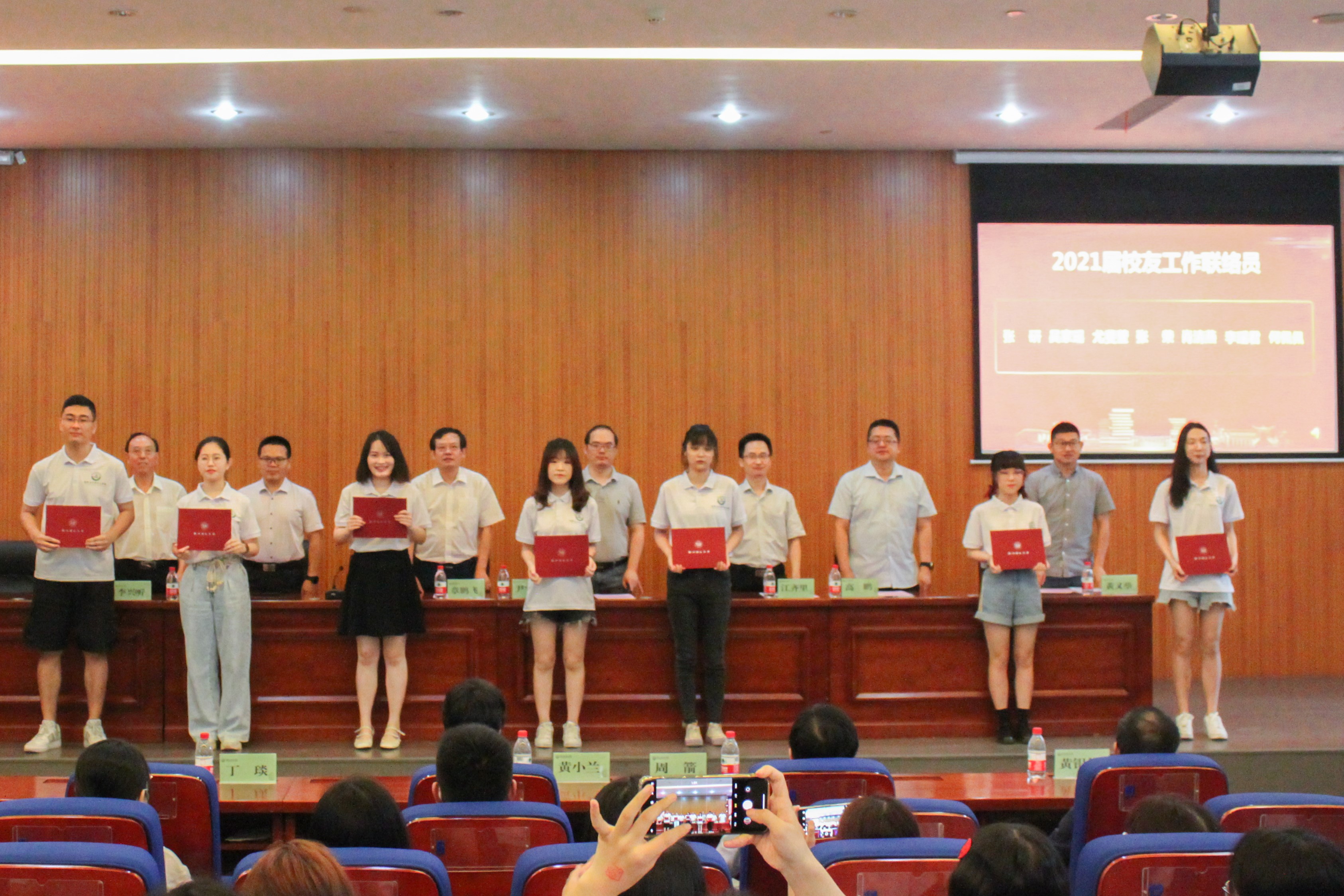 典礼现场进行了校友联络员聘任仪式,7名2021届校友从老师手中接过聘书,承担起广泛联络校友、团结凝聚毕业生的重要职责。