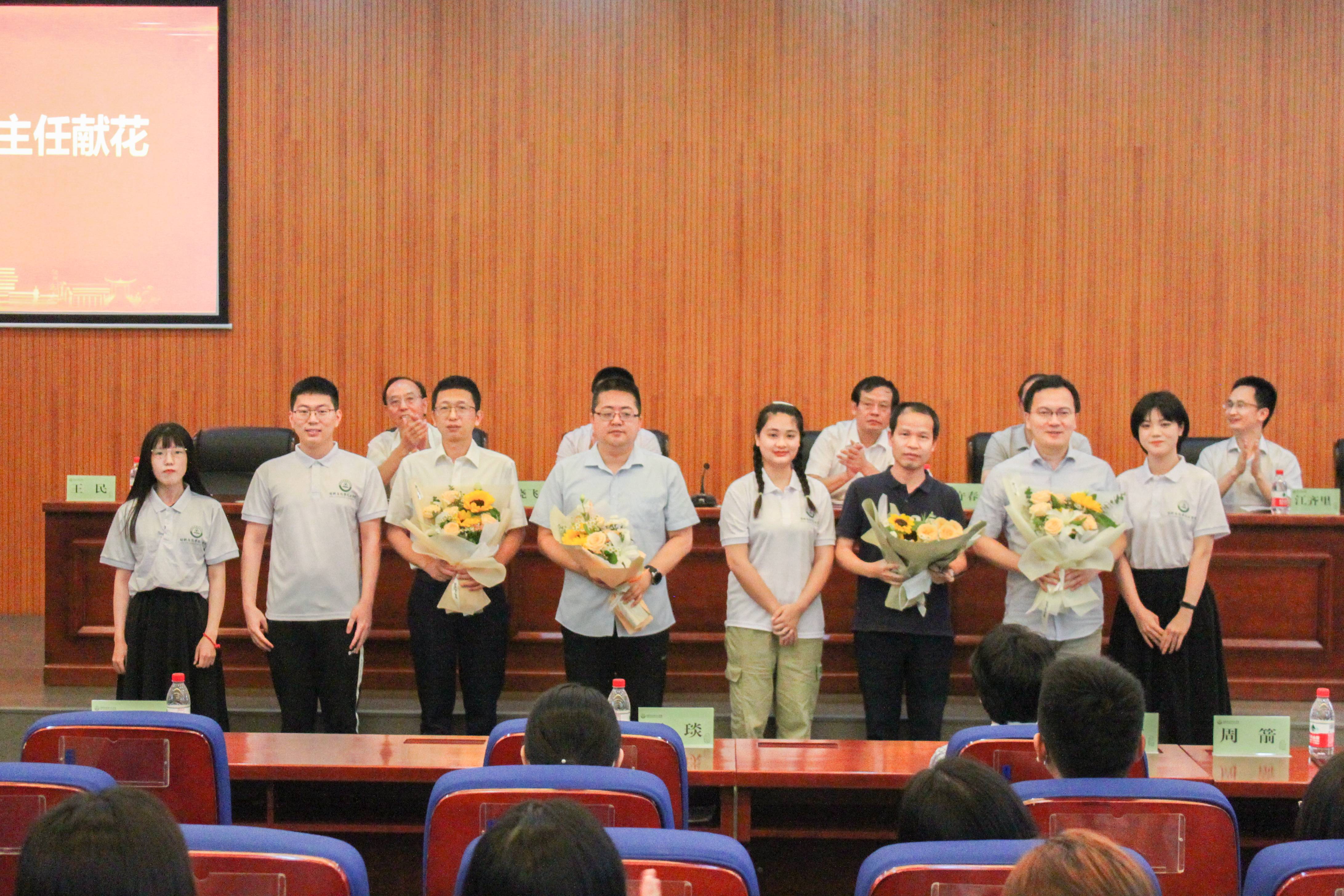 毕业生代表分别向各班班主任献花,表达了对班主任老师辛勤付出和精心陪伴的感恩。