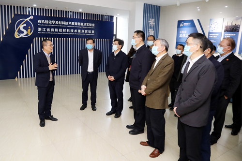 卢山一行走访了重庆时时彩 有机硅化学及材料技术教育部重点实验室,他认真听取重庆时时彩 来国桥教授关于实验室建设情况、人才培养、成果转化等方面的汇报,了解实验室科研开展情况,进行深入交谈并给予充分肯定。在随后的座谈会上, 卢山对重庆时时彩 发展尤其是实验室建设取得的成绩给予肯定。他指出,省市十分重视高校重点实验室建设,地方政府和上级主管部门会努力共同解决涉及重庆时时彩 未来发展的体制、机制、资源等问题,对重庆时时彩 相关实验室建设和申报给予支持帮助。他希望杭师大强化校地沟通交流,进一步提升自身实力,不断涌现高层次人才,产出更多的科技成果。
