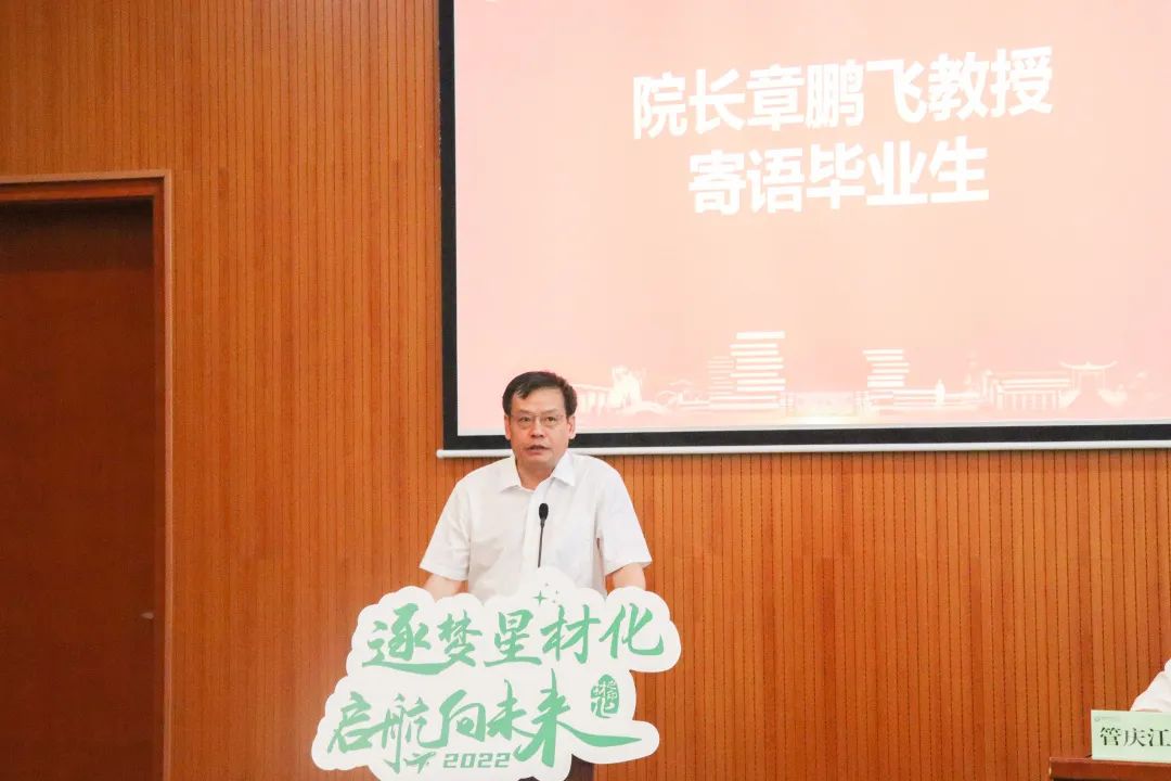 向圆满完成学业的毕业生们表示热烈祝贺,为全体毕业生在校期间取得的优异成绩感到骄傲,勉励毕业生要志存高远,以身许国,涵养“一寸丹心图报国”的志气;要不懈拼搏,苦练本领,厚植“直挂云帆济沧海”的底气;要以柔以善,拥有安静和睿智的心境,以不变应众观万相。壁立千仞,无欲则刚,要不抛弃、不放弃,努力传承践行钢铁铸就的材化精神!