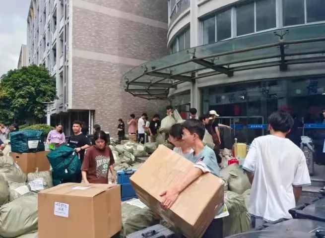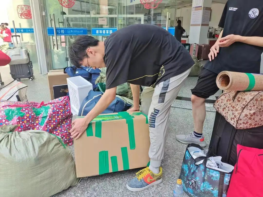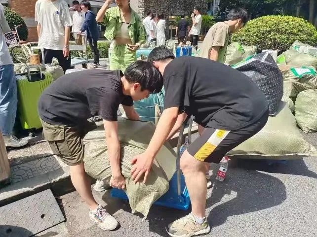 有一位志愿者,浑身被汗水浸透,累坐在地上,但稍作休息,便又开始搬运。还有一位志愿者,有腰伤在身,询问他时,他笑着说:“我可以搬轻一点的。”受帮助的学生也主动为志愿者递纸巾、送上水、搭把手,自己的物品搬完了,又去帮助其他同学,志愿者精神得到了生动地诠释!
