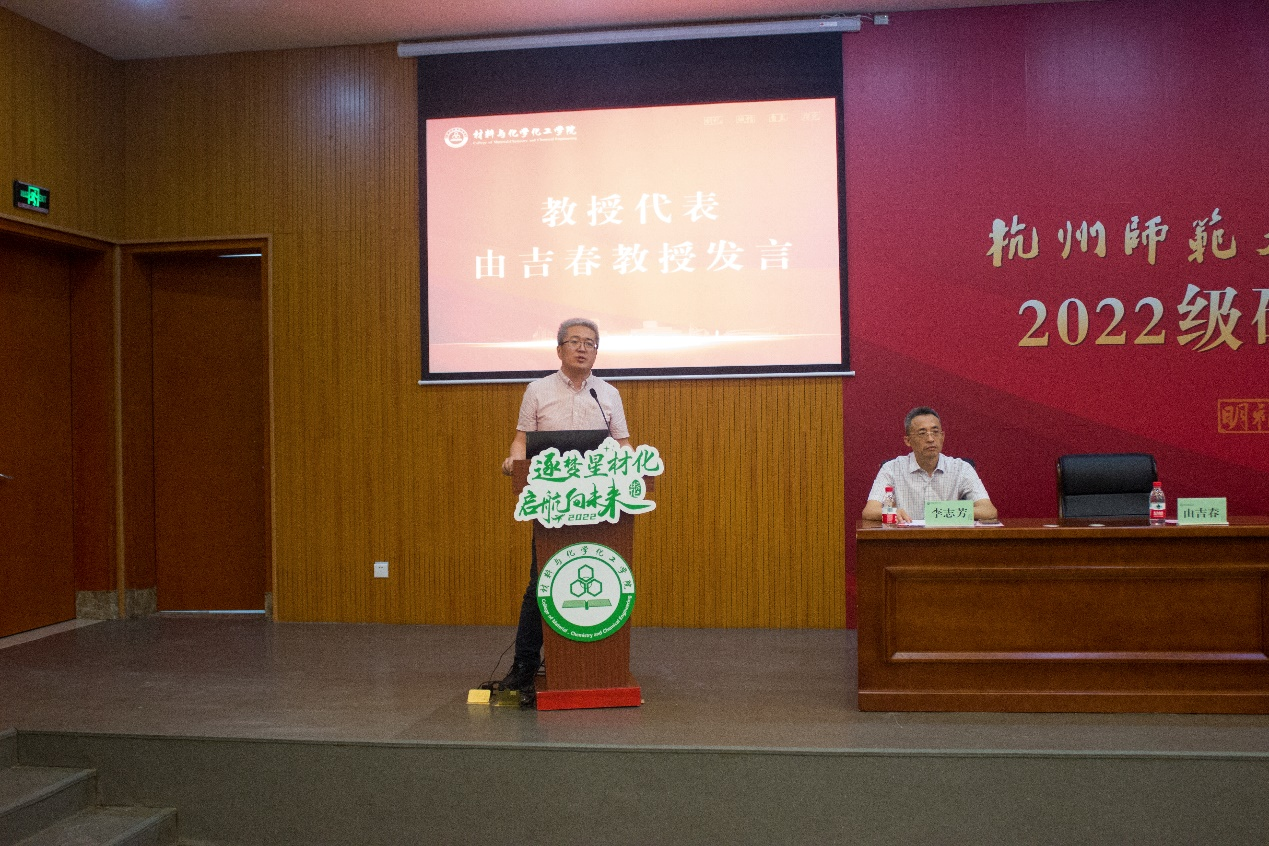 由吉春教授用身边的研究生成长成才案例为新生未来的研究生生活提供了宝贵的意见,叮嘱大家要在科研道路上用心观察、勤于思考,善于动手,既要有战略层面的思维能力,也要有战术层面的实际操作能力。