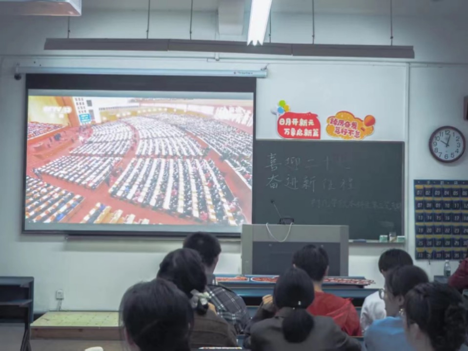 2022年10月16日,我们在线下统一观看党的二十大开幕会,在习近平总书记演讲的过程中,响起了一阵又一阵如热浪般的掌声,我的心中跟随着这掌声掀起澎湃的激情。