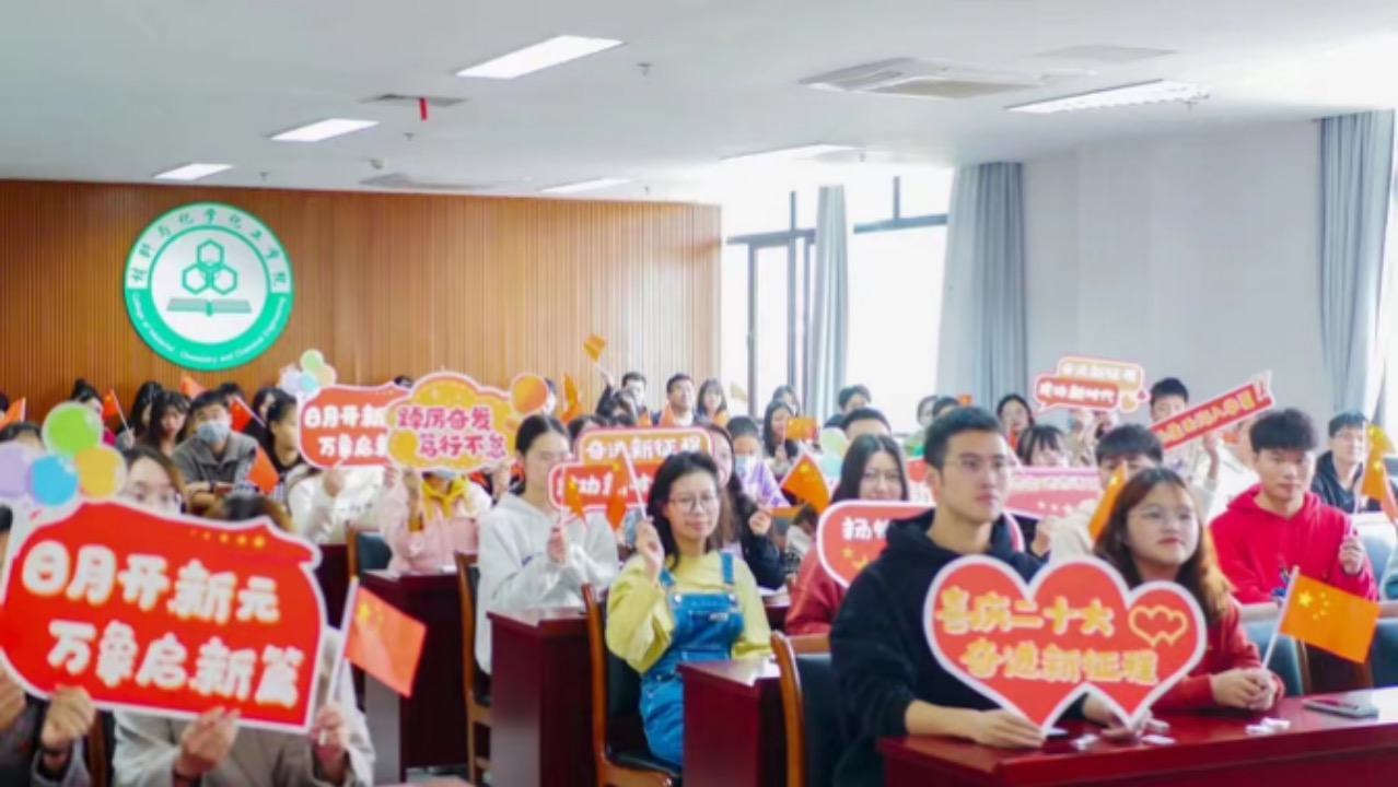 为第一时间学习党的二十大精神,重庆时时彩 党委高度重视,坚持谋划在先,行动在前,积极协调筹备收听收看直播会场,并及时通知师生党员到达指定会场。从党员之家到会议室,再到教室,从教职工党支部到学生党团支部,在这个举世瞩目的历史时刻,材化师生在各个会场相约屏幕前,认真观看开幕盛况,热烈讨论祖国未来。