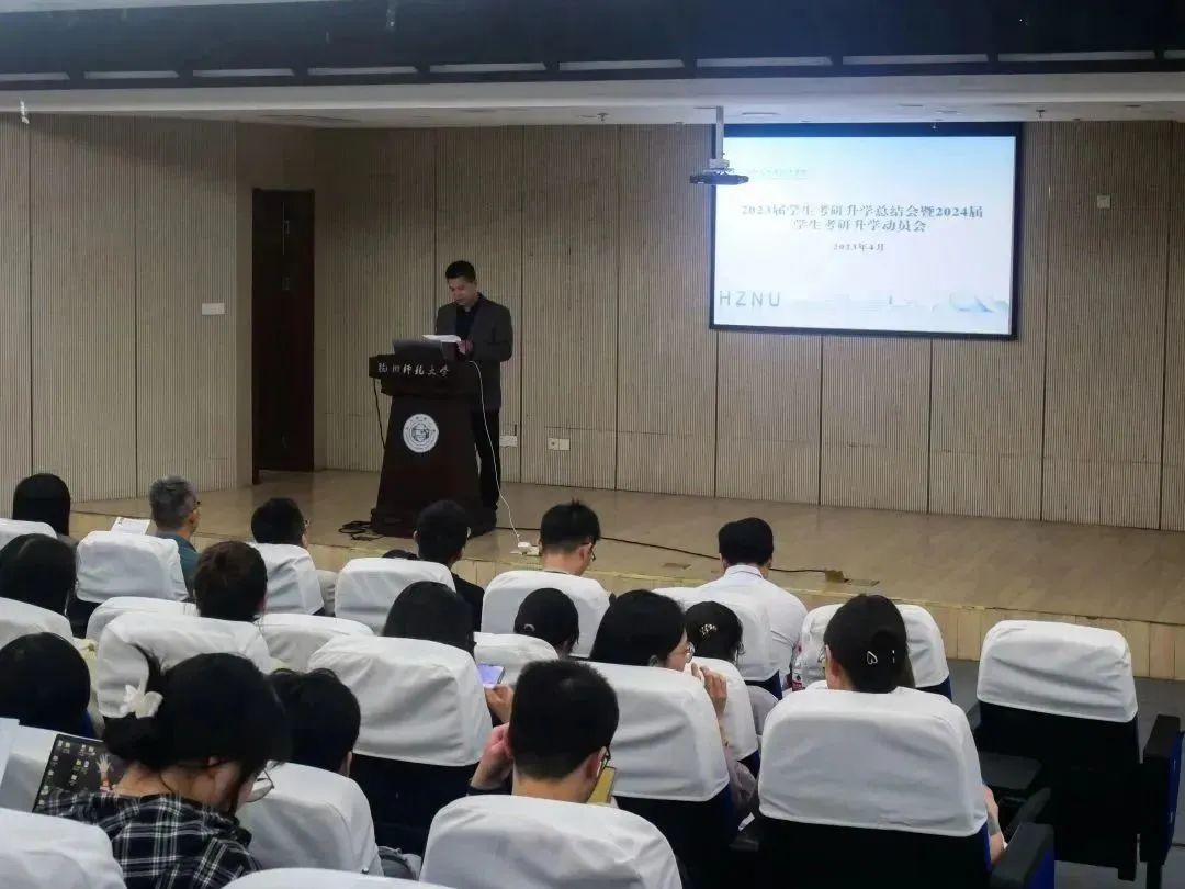 近年来考研及出国升学情况,并就考研前期准备、复习时间安排、考研信息和政策的获取、考研过程中可能出现的问题和注意事项等为同学们作了讲解。