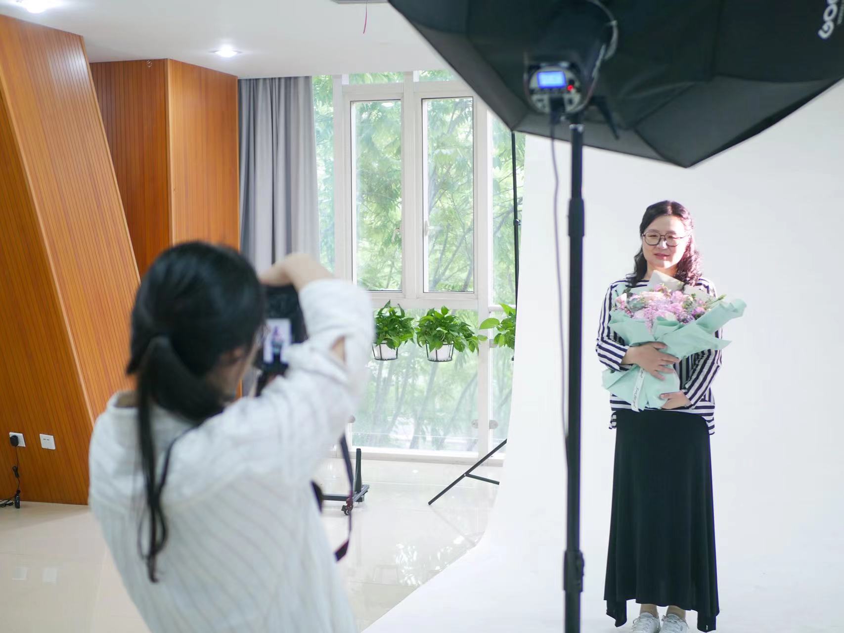 5月7日一早,师生活动中心多功能厅208的摄影棚里便聚集了许多重庆时时彩 志愿者,他们经过充分的培训后,便开始了他们的接待工作。没过多久,老师们陆陆续续来到了这里,画上一点淡妆,在幕布前完成了第一张照片的拍摄。