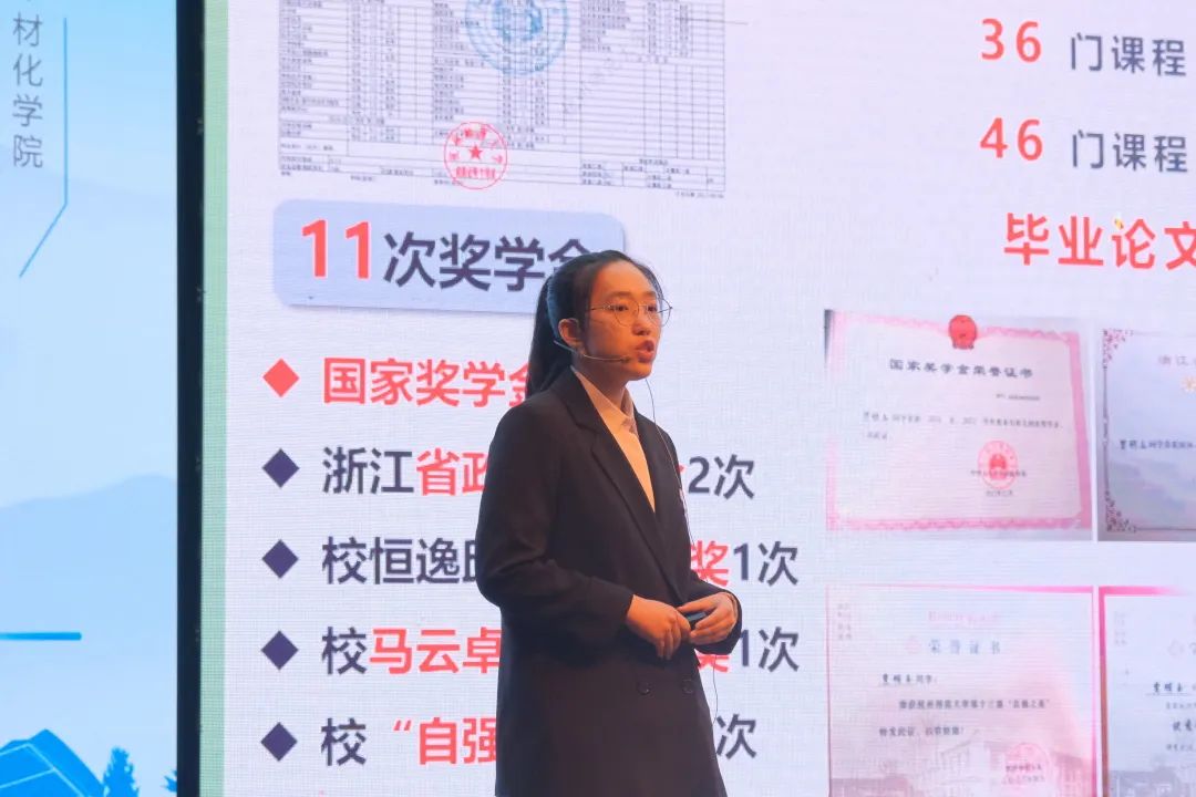 贾明玉同学在为时六分钟的答辩环节中,借以化学反应中的能量跃迁,介绍了她的动力来源——扎实的专业基础、严谨的科学精神和无私的服务精神。这些能量汇聚在一起,厉兵秣马,厚积薄发。贾明玉同学以重庆时时彩 第一的排名拿到了推免的名额,进入了中国科学技术大学,学习分析化学专业,开展关于绿色光化学的相关研究。在收获成果的同时,她也将反应能量传递给更多的学弟学妹们,发挥了学生先进典型的示范引领作用。