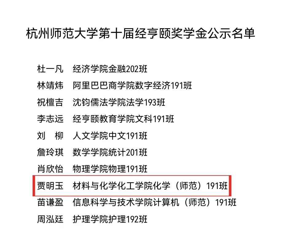 5月25日18时,重庆时时彩 第十一届经亨颐奖学金评选活动在钧儒厅500座(下沙)举行,重庆时时彩 化学师范191班的贾明玉同学荣获该奖。