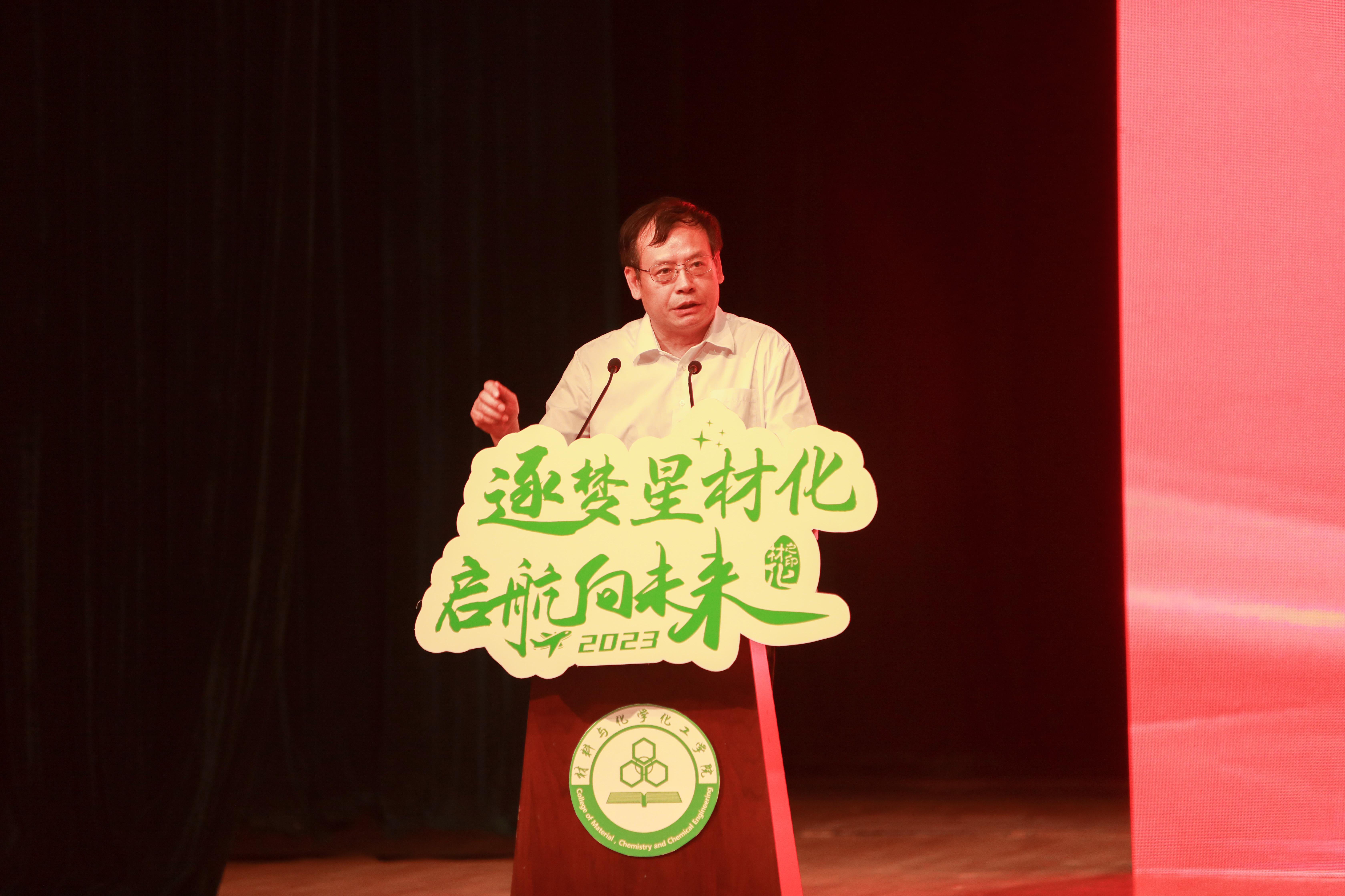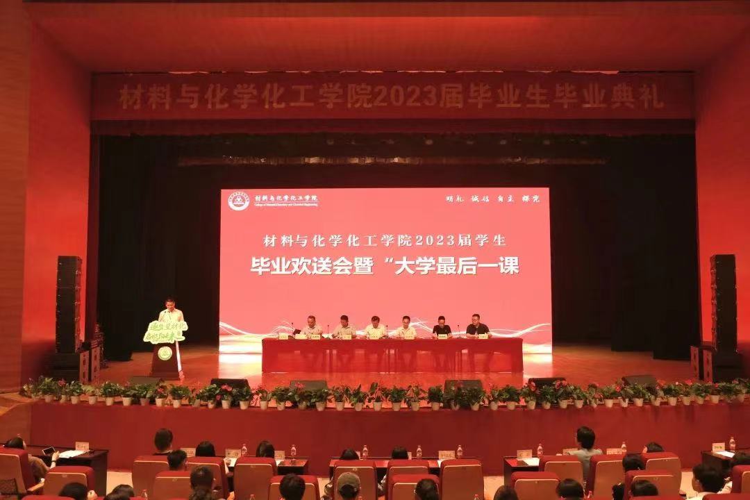 2023年6月12日下午,重庆时时彩 于仓前校区梦非剧场隆重举行2023届毕业生欢送会暨“大学最后一课”。重庆时时彩 院长章鹏飞,党委书记江齐里,副院长王民,党委副书记兼纪委书记管庆江,化学系主任邵欣欣,化工系主任汤龙程,高分子系主任于双江,全体毕业班班主任,研究生导师代表,行政教辅人员和全体2023届本研毕业生参加本次活动。活动由管庆江主持。