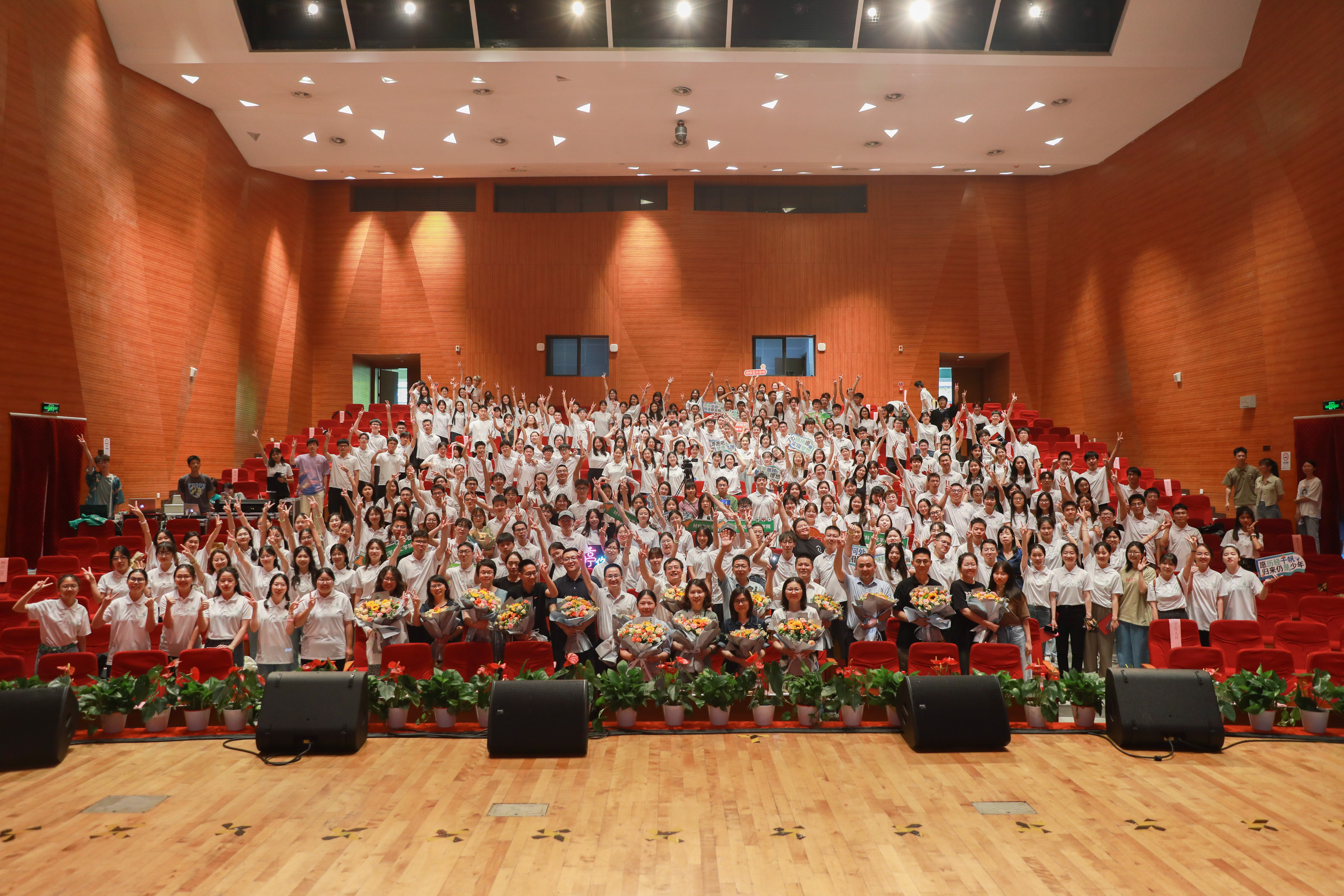 典礼在师生们的齐唱校歌中走向尾声。在全体老师的目送下,萦绕在《再见》的歌声中,毕业生们挥手向前出发,正如歌中一样“我会牢牢记住你的脸,我会珍惜你给的思念……不回头的走下去”,句句真心,字字实意,就让我们在夏天的相遇,在夏天告别吧。