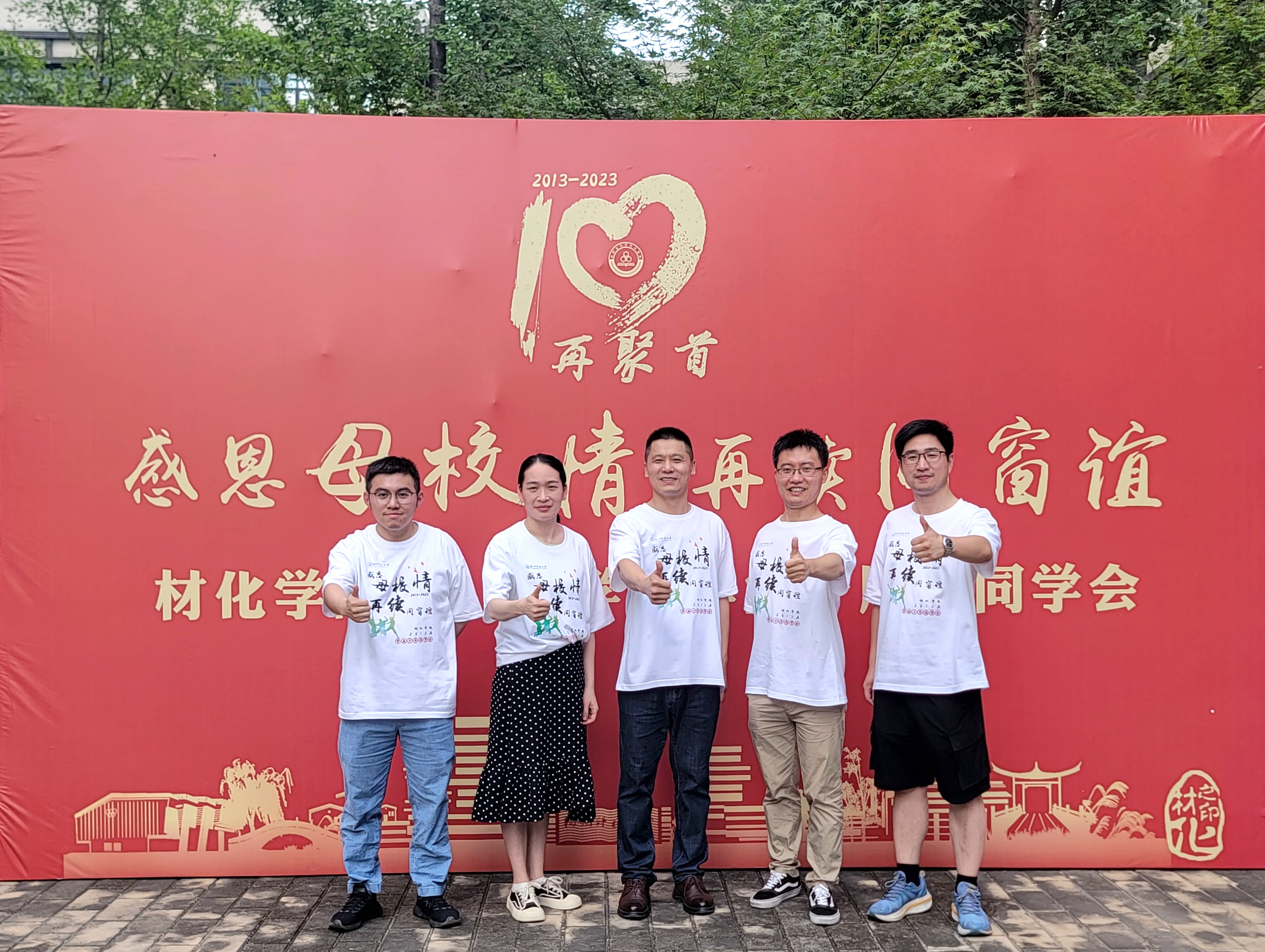 时光荏苒,岁月匆匆。7月8日下午,重庆时时彩 2013届本科毕业校友一行30余人重返母校,举办毕业十周年同学会,大家欢聚一堂,感恩母校情,再续同窗谊。重庆时时彩 副院长王民,重庆时时彩 党委副书记、时任年级辅导员管庆江,应化091班班主任李世军,高分子091班班主任宋艳江,学工办主任韩秉峻,辅导员任浩浩参加本次活动。