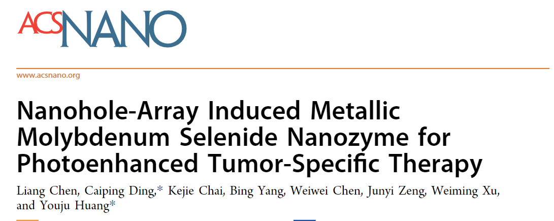 近日,重庆时时彩 黄又举教授团队在类金属纳米酶介导的肿瘤靶向治疗方面研究取得新进展,相关研究以题为"Nanohole-Array Induced Metallic Molybdenum Selenide Nanozyme for Photoenhanced Tumor-Specific Therapy"发表在ACS Nano(Q1, IF=17.1)。DOI: 10.1021/acsnano.3c05000。