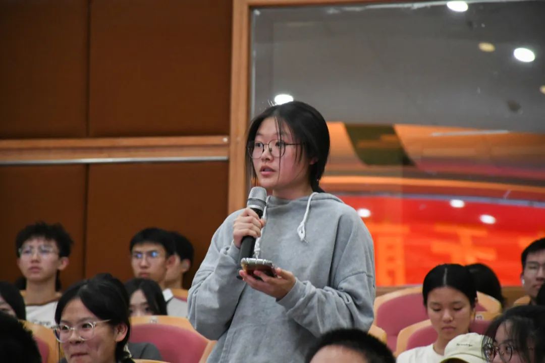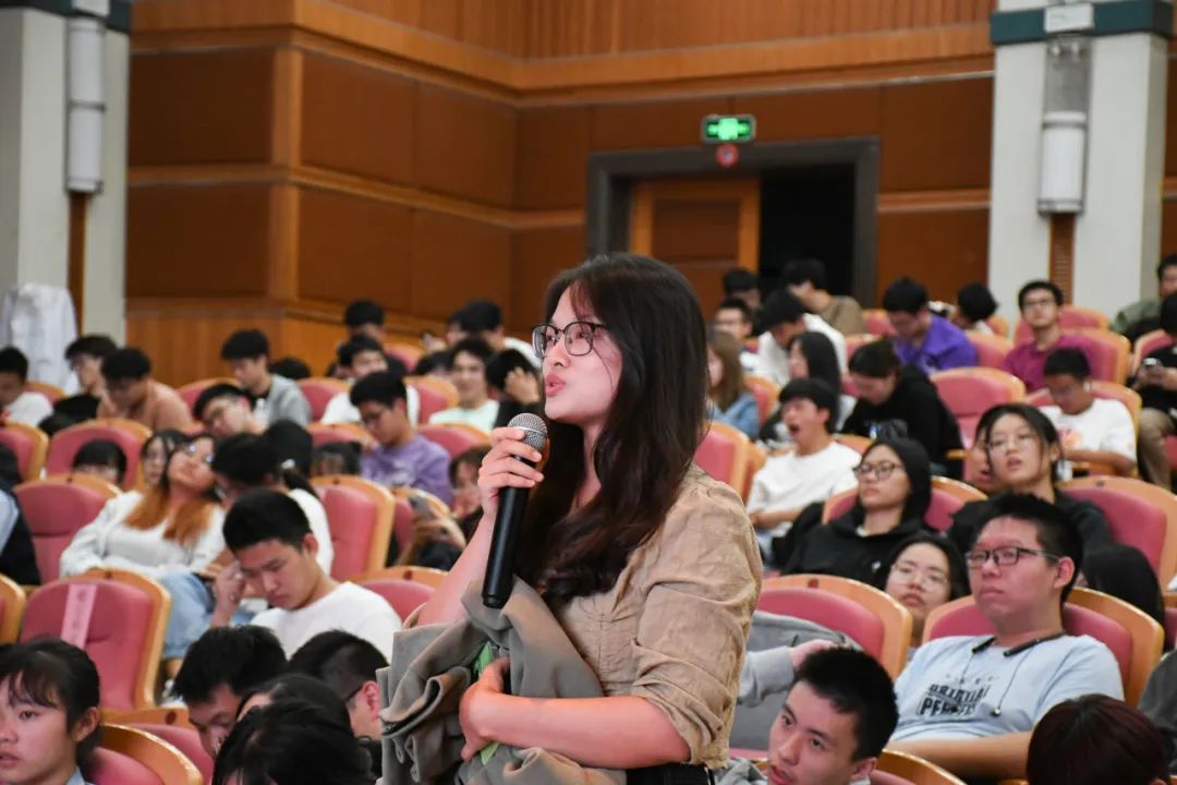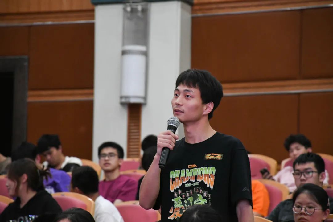 在互动环节阶段,围绕同学们提出的如何在大学四年形成从0到100的突破思想、如何在网站上寻找新的研究成果与学习相结合、如何进行职业规划等问题,章鹏飞用生动幽默的语言一一给予了耐心细致的解答。