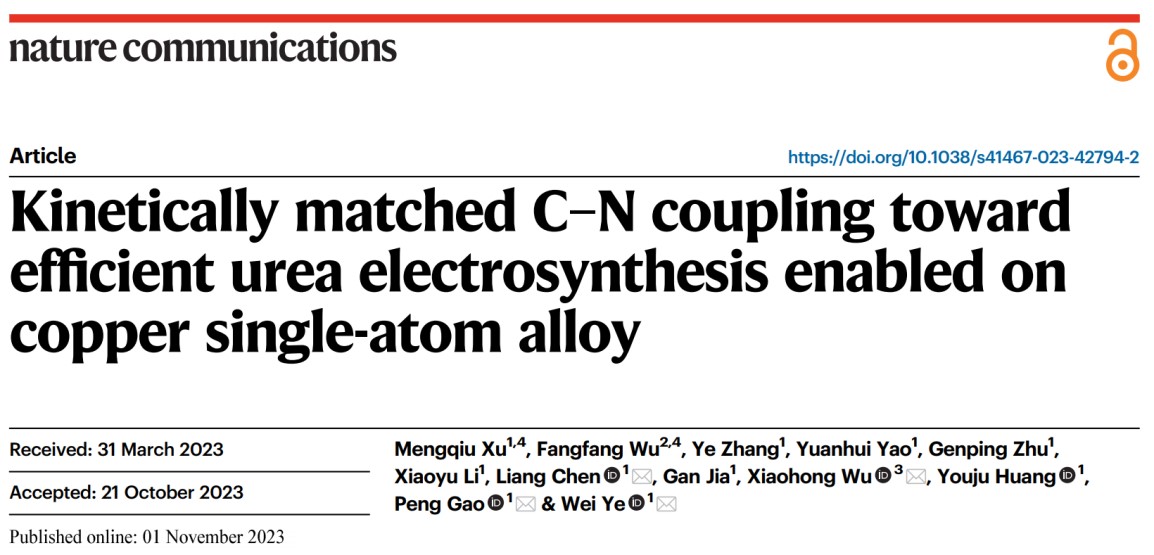近日,重庆时时彩 重庆时时彩 高鹏教授团队在电化学C-N偶联方面取得新进展,相关研究成果以题为“Kinetically matched C–N coupling toward efficient urea electrosynthesis enabled on copper single-atom alloy”发表于国际知名期刊Nature Communications(IF=16.6)上。