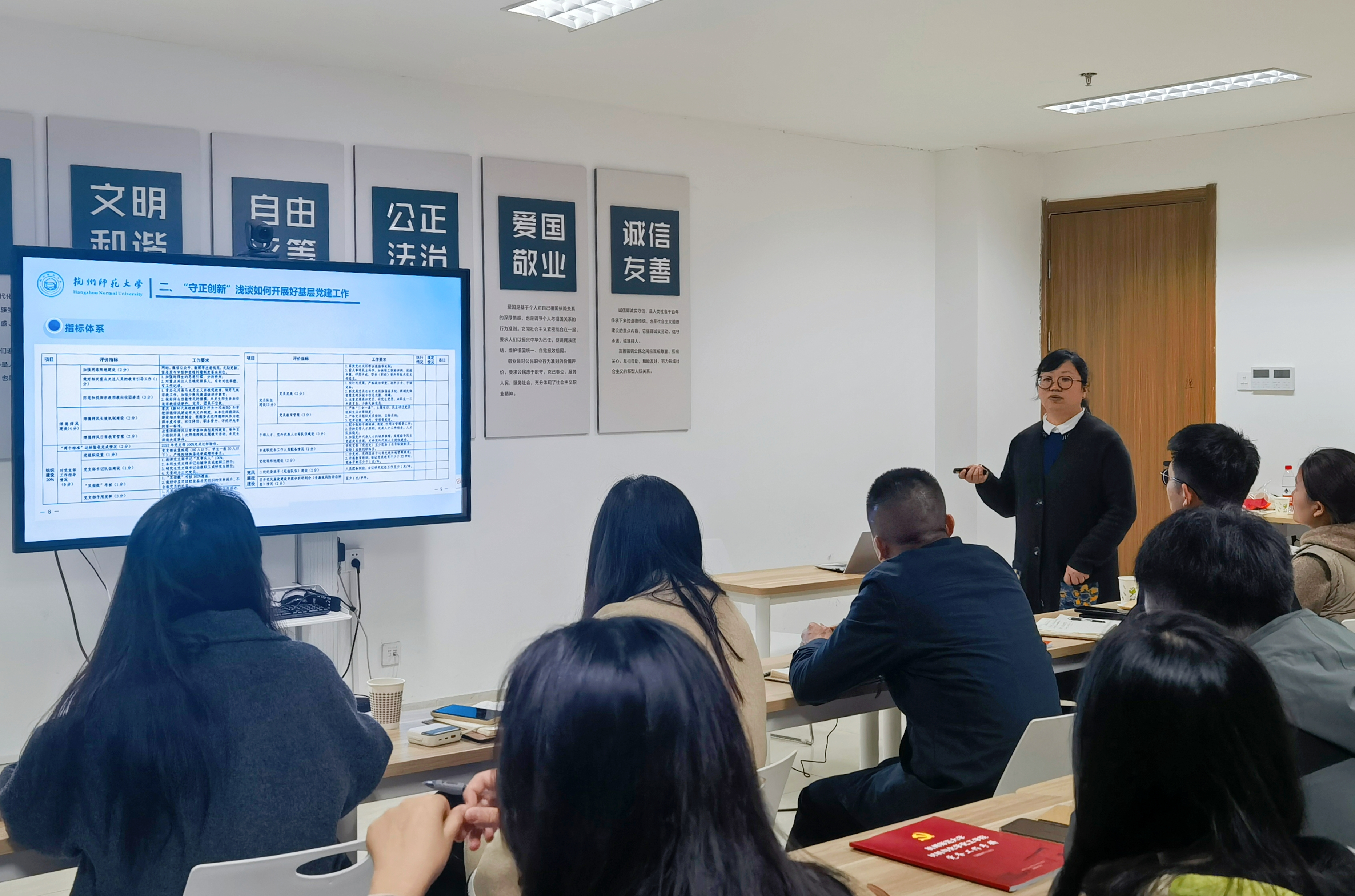 最后,何平提到,开展基层党建工作,最关键的就是守正创新,要新在融合,教学、科研、学科、专业等方面都要相互融合创新;要新在方式、新在路径,不能一味地照抄照搬优秀组织的优秀案例,要结合本支部的特点,找到适合本支部的发展方法,既要脚踏实地,也要抬头仰望星空;要新在文化,在基层党建工作中要注重环境的红色创造,以更好的红色党建氛围助推党建工作更好的发展。