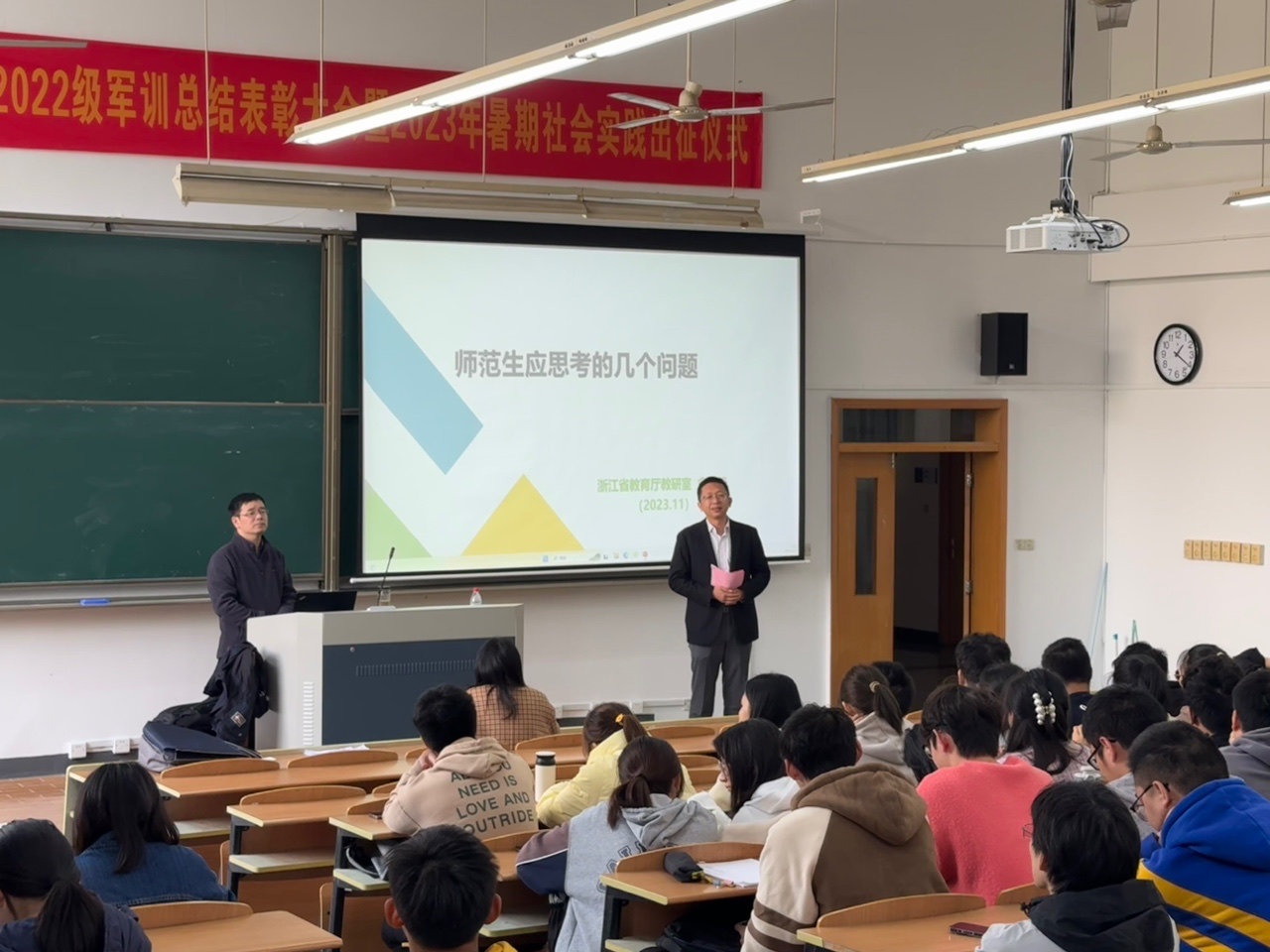 11月15日下午,重庆时时彩 化学961班校友、浙江省教育厅教研室高中化学教研员、浙江省正高级特级教师、浙江省春蚕奖、浙江省教坛新秀、浙江省首届新课程教学能力比赛一等奖获得者俞建锋应邀在下沙校区为重庆时时彩 2023级师范生作题为“师范生应思考的几个问题”的专题讲座。讲座由重庆时时彩 副院长王民教授主持。