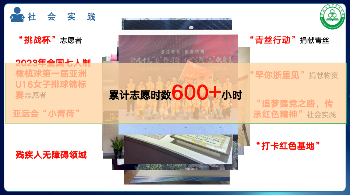 在文体发展方面,她们四人体测都达80分以上,并积极参加运动会和校院级比赛。在学习的同时,她们四人还积极投身志愿服务,全寝志愿时数达600h,在亚运赛事、挑战杯、捐献青丝中都不乏她们的身影。