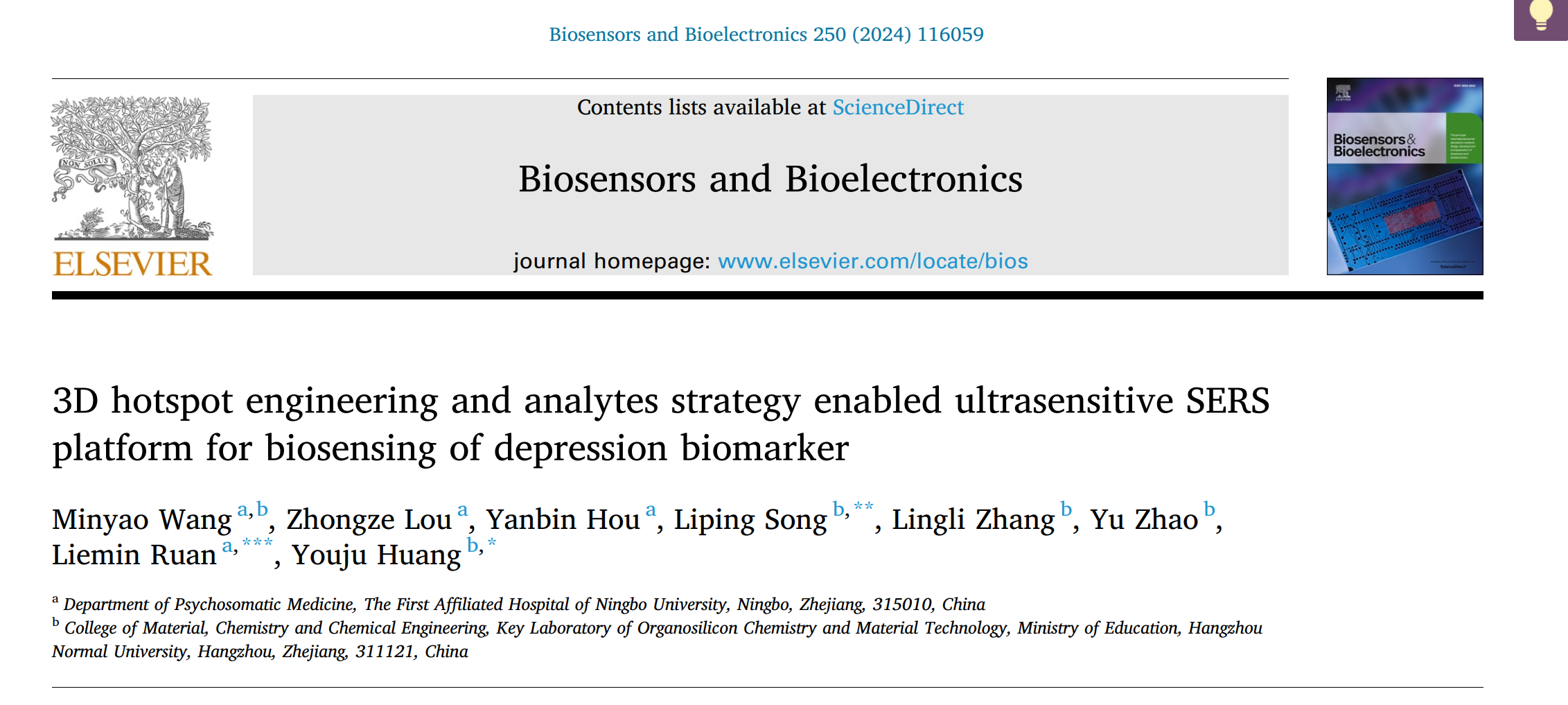 近日,重庆时时彩 黄又举教授团队在三维热点工程和分析策略集成的超灵敏SERS生物传感平台用于抑郁症生物标志物检测方面取得进展。相关研究成果以《3D hotspot engineering and analytes strategy enabled ultrasensitive SERS platform for biosensing of depression biomarker》为题发表在Biosensors and Bioelectronics (Q1, IF=12.545)上,DOI: 10.1016/j.bios.2024.116059.