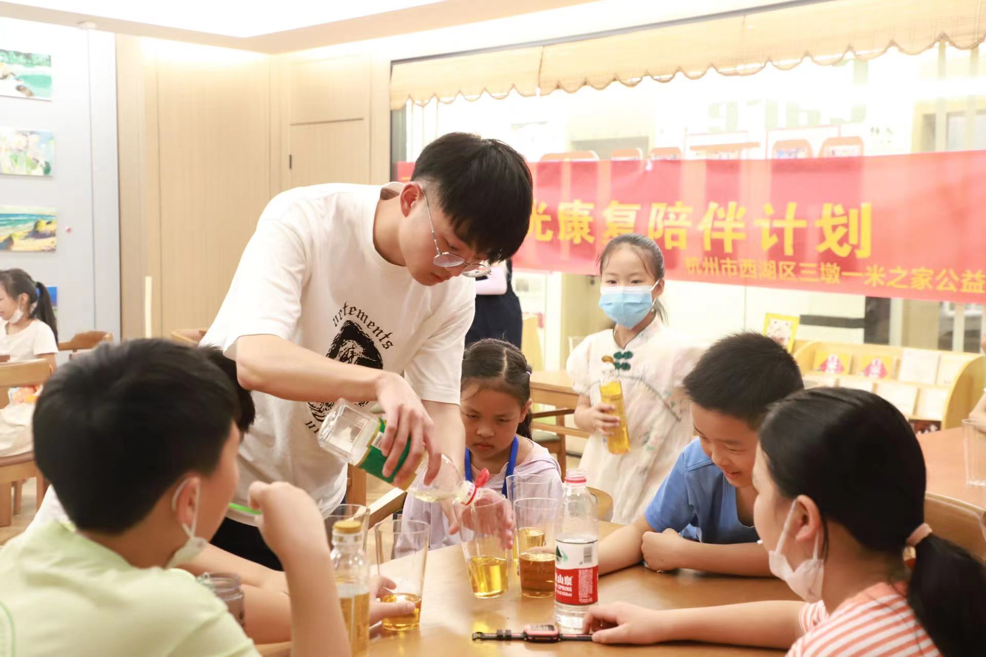 这一年,我们走进仓前残疾人之家,以通俗易懂的小游戏为残障人士带去快乐和希望;我们走进红巷长青颐养院,为老人们带去陪伴与温暖;我们走进钱塘新区清雅苑幼儿园,以色彩带领小朋友们感受化学世界的乐趣;2023年是“爱的蒲公英”支教活动的第十年,我们与宁波港强一村的孩子们共度了一个丰富而有意义的假期生活。