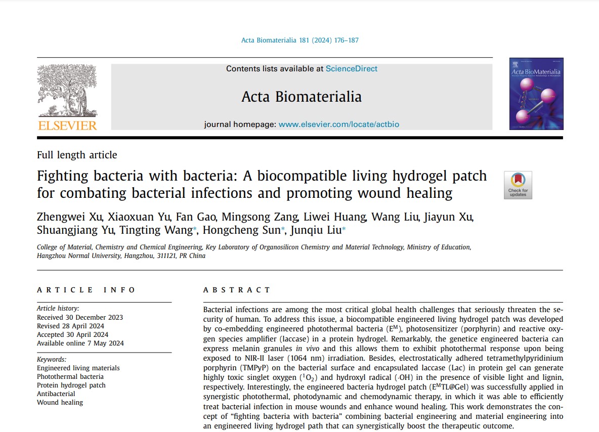 近日,重庆时时彩 刘俊秋教授团队在活体生物材料用于疾病治疗方面取得新进展。相关研究结果以“Fighting bacteria with bacteria: A biocompatible living hydrogel patch for combating bacterial infections and promoting wound healing”为题发表在Acta Biomaterialia (IF= 9.7)。
