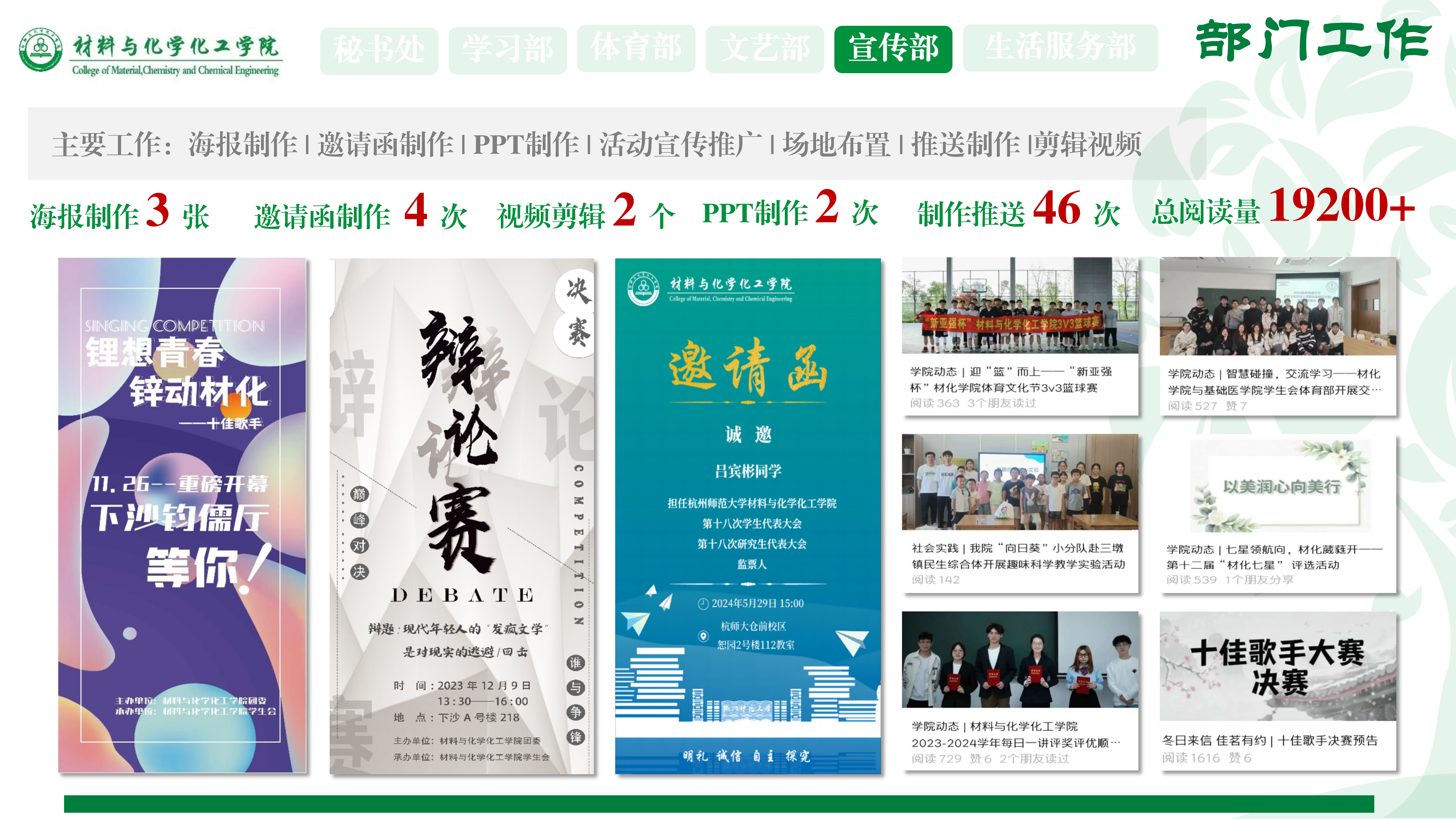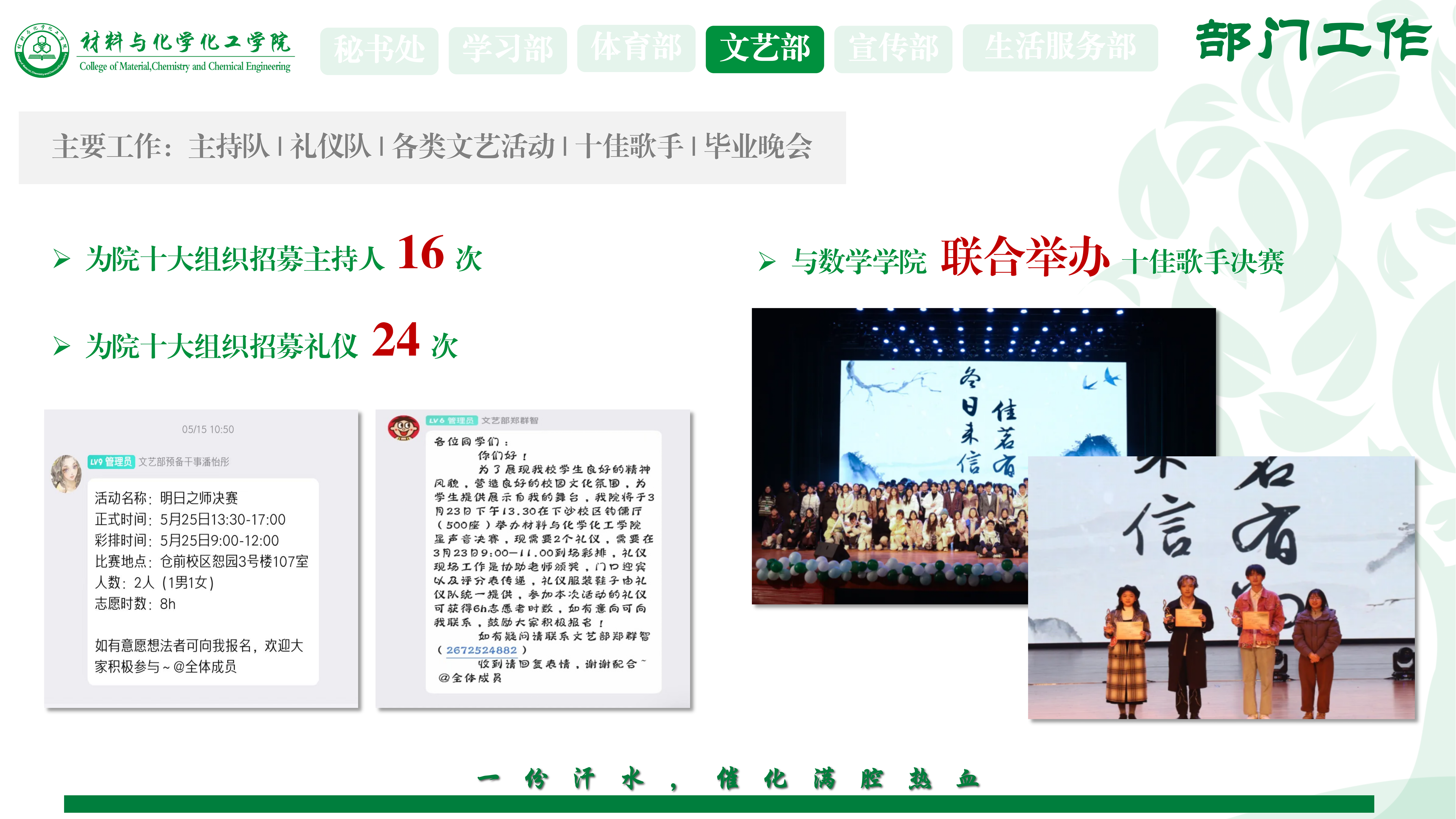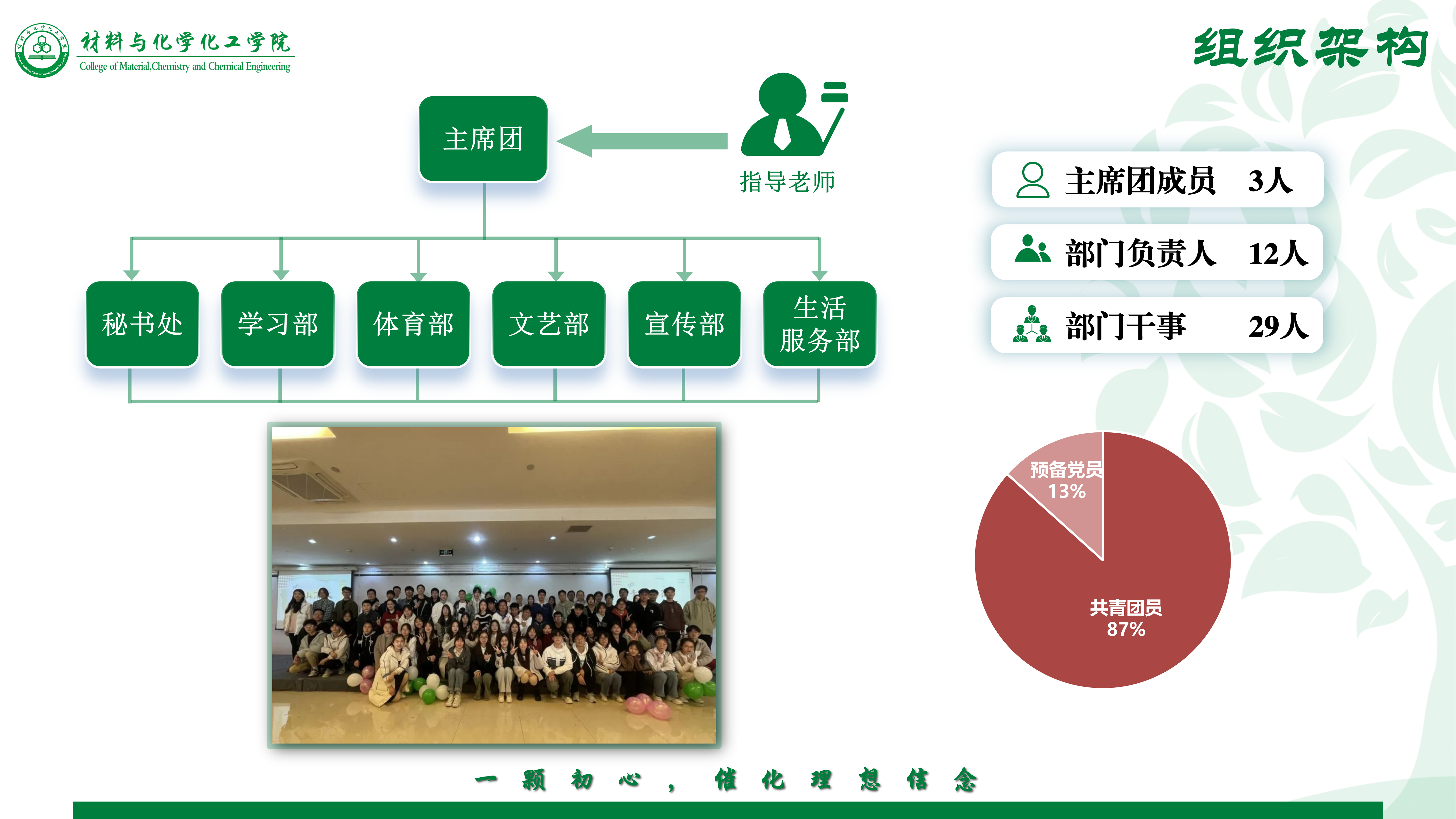 未来,在更多材化学子的努力下,我们将进一步打造一个创新型、潜质型、智慧型、服务型的学生会。