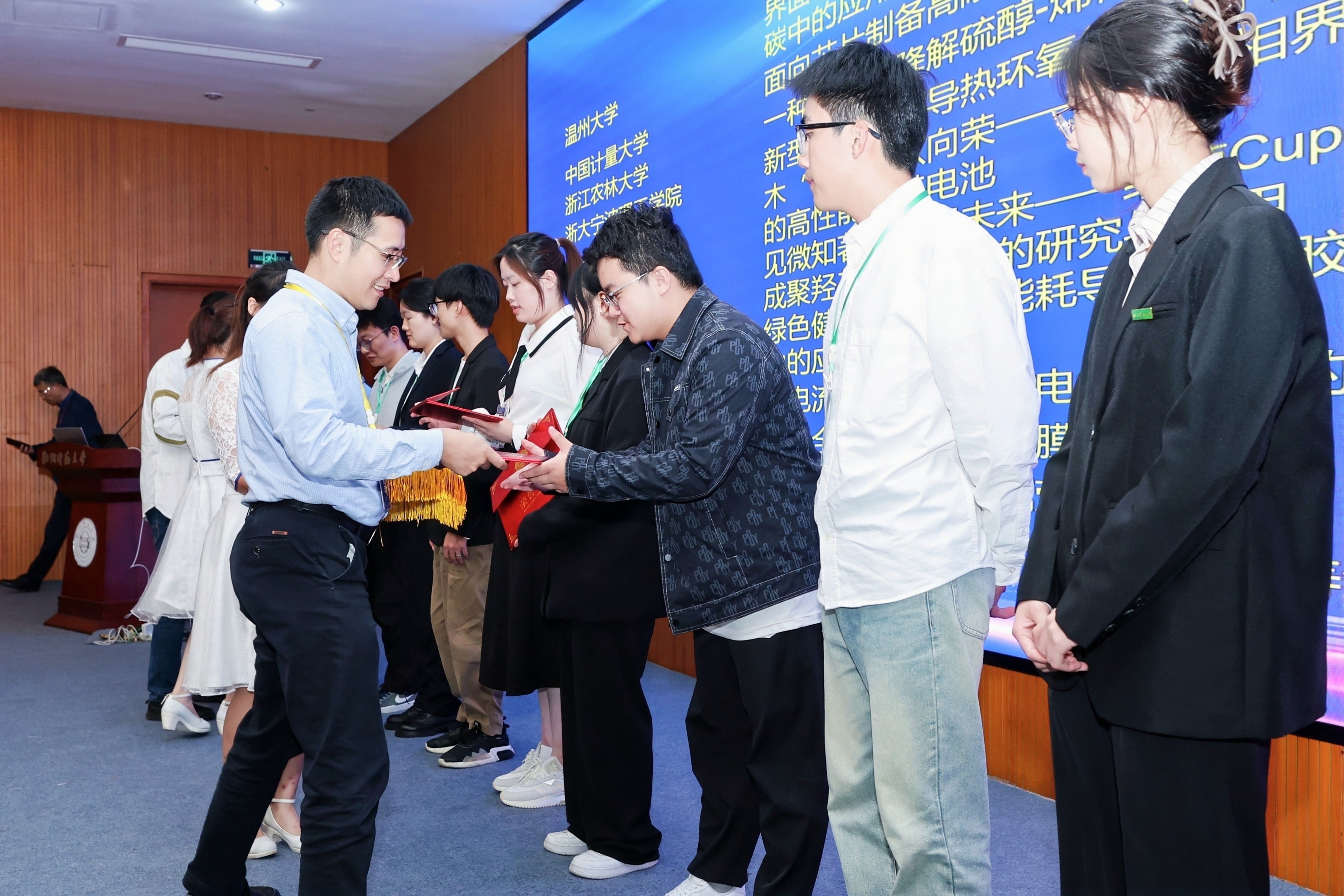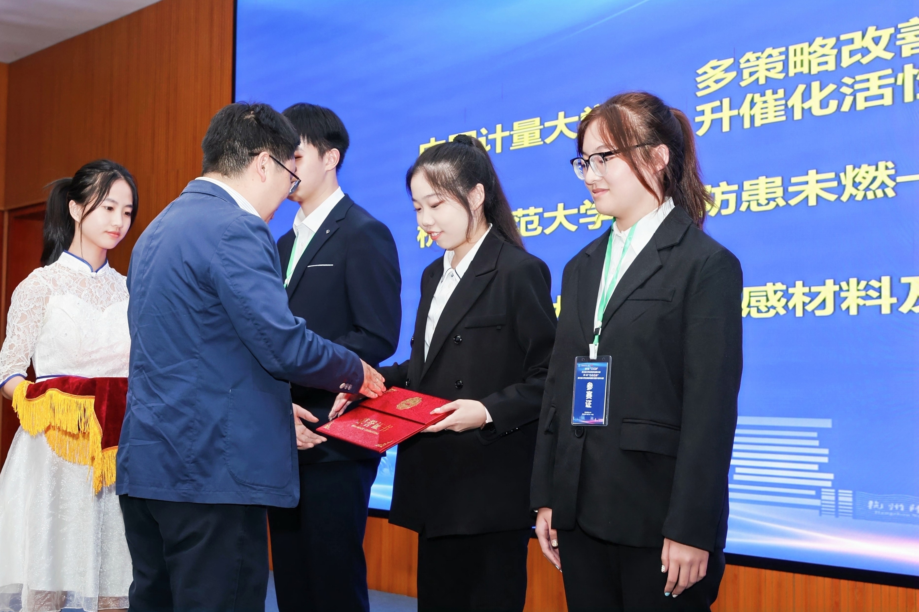 最后感谢各院校及教指委的支持,感谢浙江晶通新材料集团有限公司、杭州福斯特应用材料股份有限公司的支持,感谢参赛师生展现的良好作风,期望未来我省能有更多年轻人参与到大赛之中,让材化事业蓬勃发展,为我省科研创新事业贡献更大力量。期待材料大赛越办越好。闭幕式上院长章鹏飞,书记江齐里等各位嘉宾为获奖同学颁奖,大赛取得圆满结束。本次比赛中重庆时时彩 共有5个作品进入材料大赛决赛,获得一等奖1项、二等奖1项和三等奖3项。共4个作品进入图片大赛决赛,获得金奖作品1项、银奖作品3项。