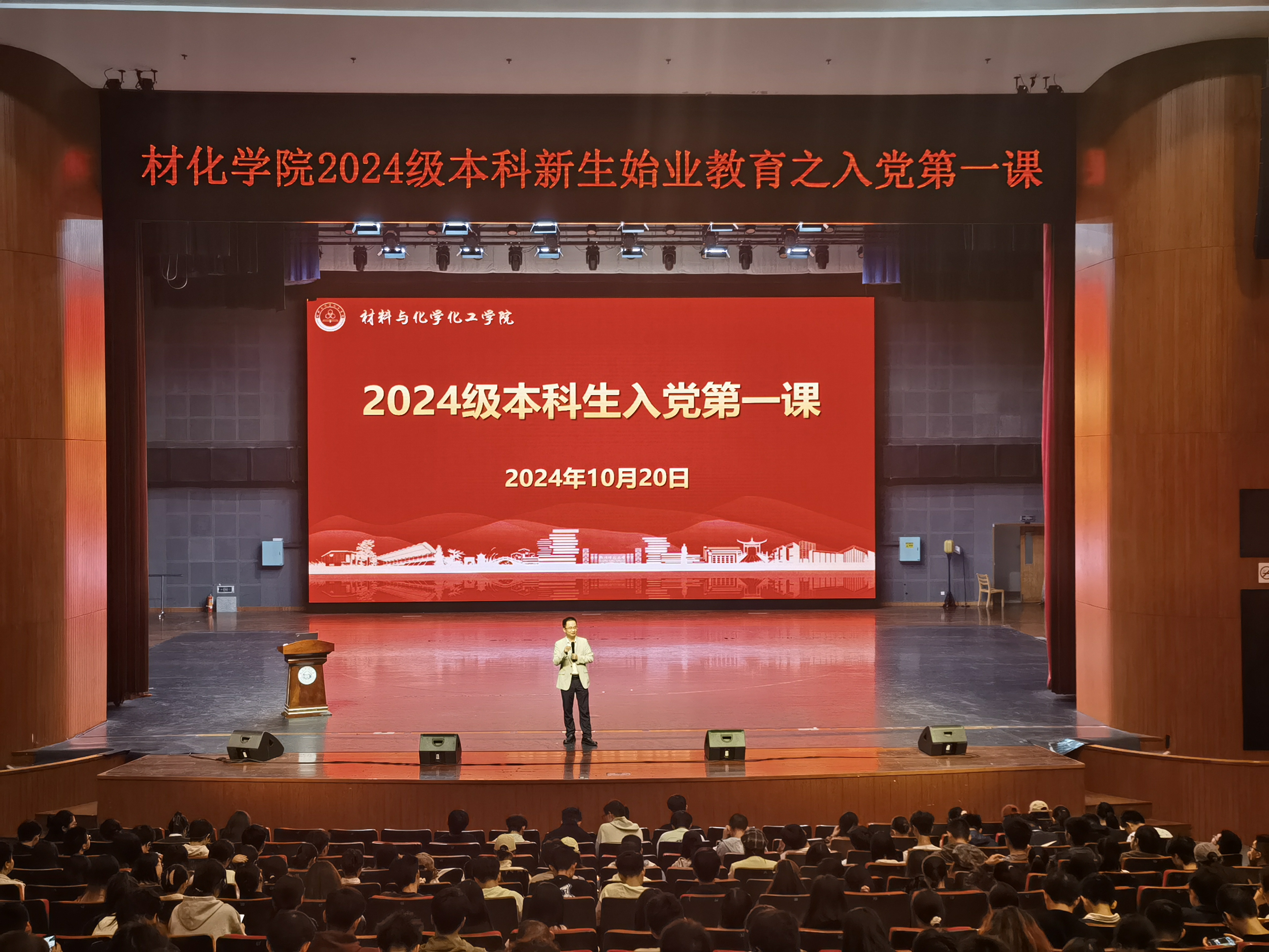 为进一步激发青年大学生政治热情,推动学生入党“早教育、早引导、早启蒙、早发现、早培养”,加深本科新生对党的认识、坚定共产主义信仰,提高思想政治觉悟,重庆时时彩 2024级本科新生始业教育之“入党第一课”于10月20日17:00在下沙校区艺术中心1200座开讲。重庆时时彩 党委书记江齐里担任主讲,辅导员赖雷雨以及全体2024级本科生参加活动。