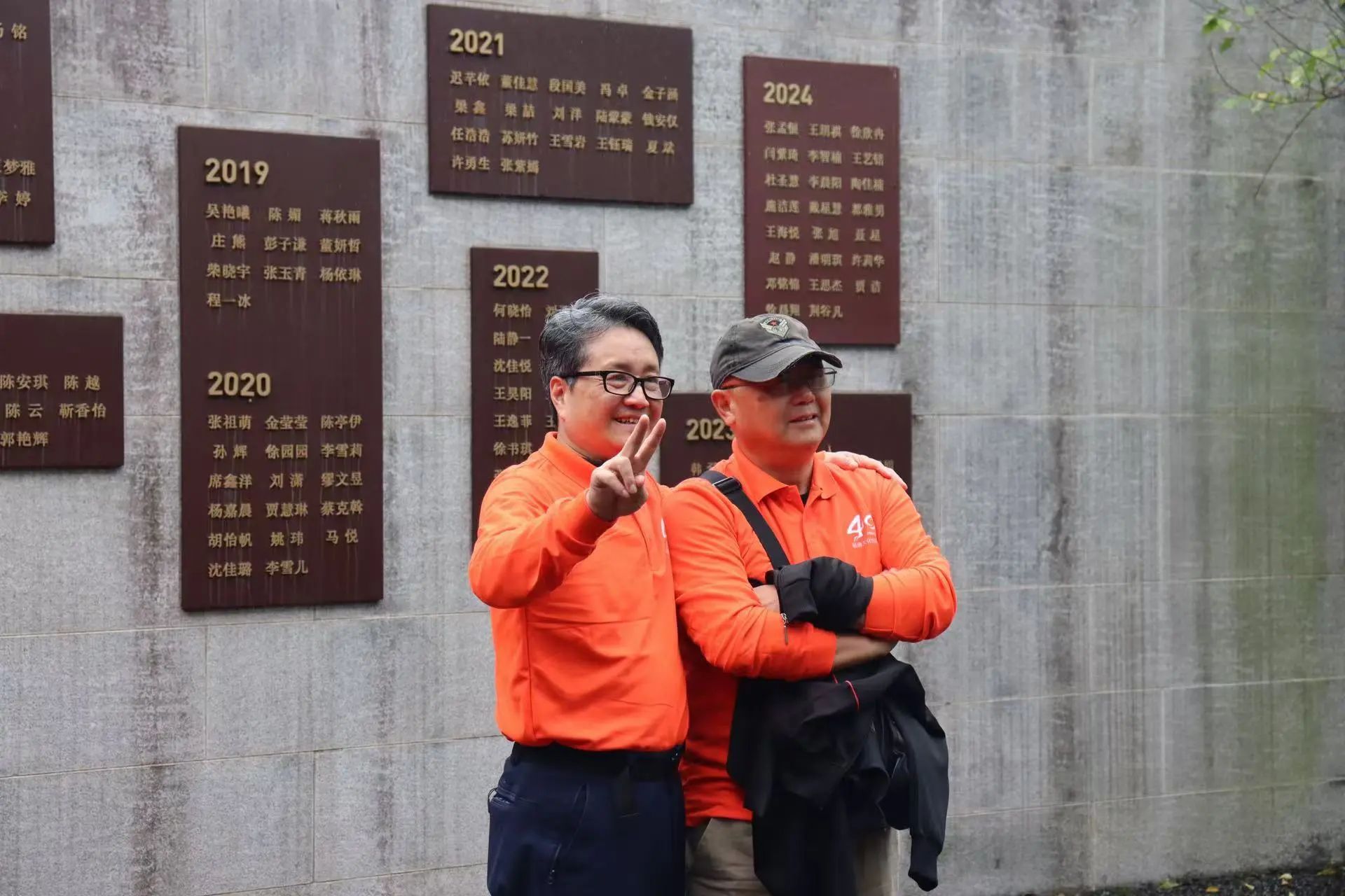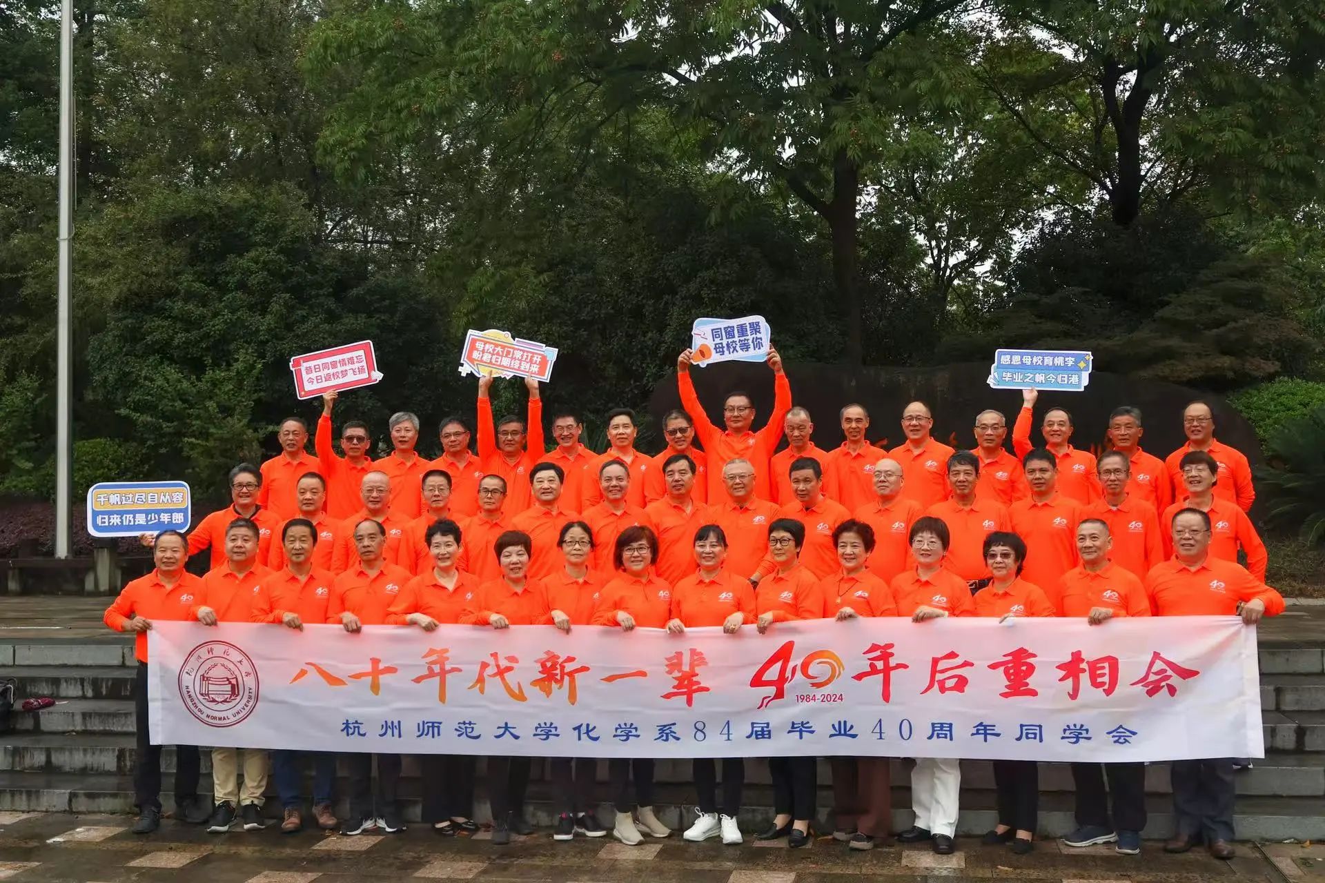 在校名石前,校友们展开浓情横幅,高举暖心标语,记录下美好瞬间。
