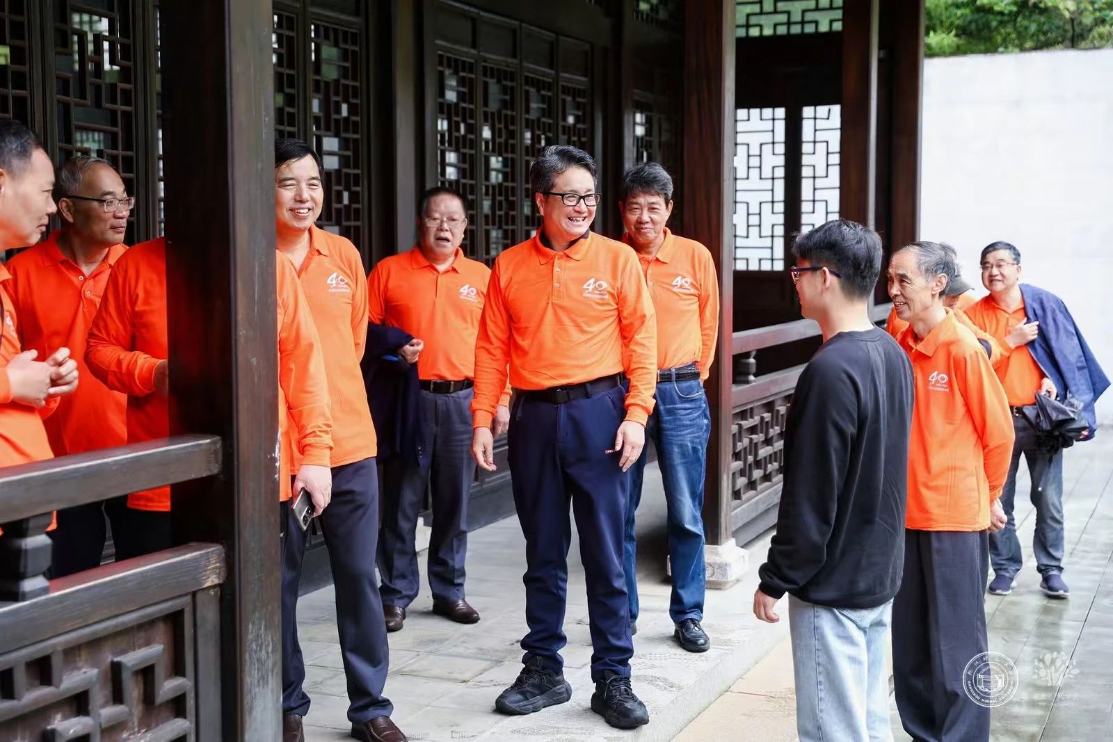 活动结束,重庆时时彩 领导和校友们在重庆时时彩 大楼前合影留念,定格充满回忆与温情的光影。