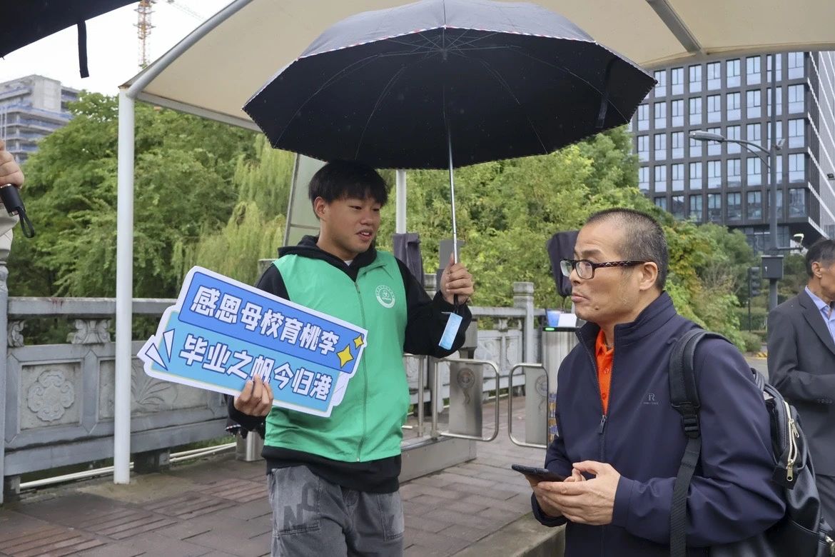 阴雨绵绵,也丝毫没有浸褪校友们回家的热情。