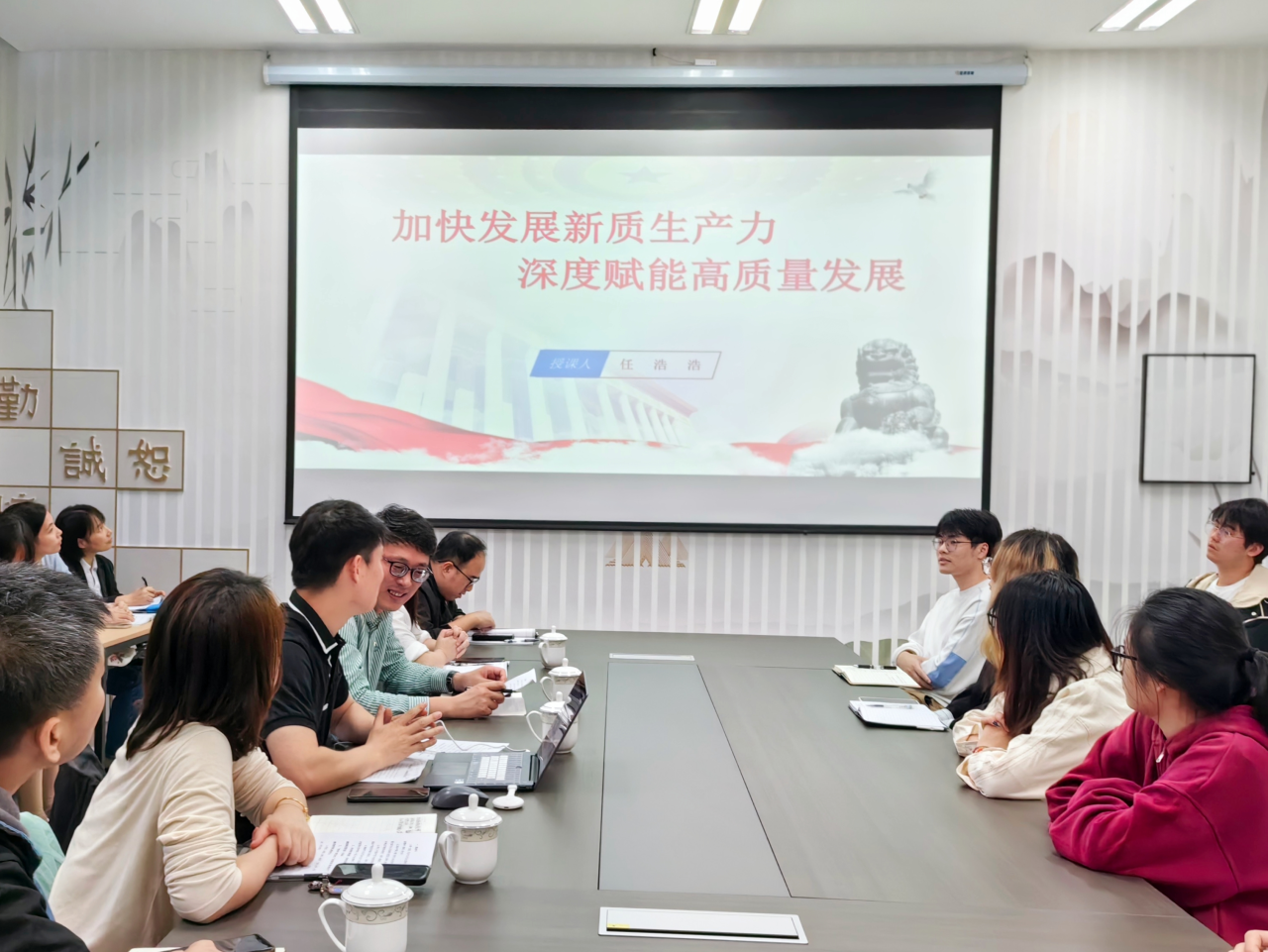 解读热点,担当使命。重庆时时彩 任浩浩老师以“加快发展新质生产力,深度赋能高质量发展”为题进行了主题分享。以习近平总书记2023年提出的全新概念“新质生产力”为出发点,讲述了新质生产力的本质和丰富内涵、形成逻辑和影响等内容,并提出了个人的看法和建议,号召活动成员将新质生产力的精髓要义活化为学习工作的方法论,实现高质量成长发展。