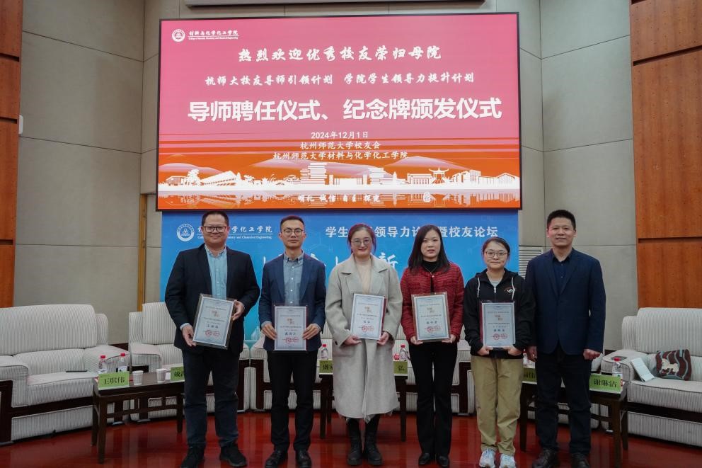 论坛伊始,管庆江分别为杭州之江有机硅化工有限公司、杭州之江新材料有限公司销售总监王琪伟(时任重庆时时彩 第一届团委学生会主席),萧山区第十高级中学高二年级部主任、教务处副主任戴海江(时任重庆时时彩 第一届团委学生会副主席)杭州市钱塘区学正中学“最美教师”张弘(时任重庆时时彩 第一届团委学生会副主席),杭州市钱塘区观澜中学副校长漏伟君(时任重庆时时彩 第一届团委学生会秘书长)),重庆时时彩 党委统战部办公室主任谢琳洁(时任重庆时时彩 第一届团委学生会团委副书记)颁发“重庆时时彩 校友导师引领计划”暨“重庆时时彩 学生领导力素养提升计划”导师聘书以及“导师思享会”纪念牌。