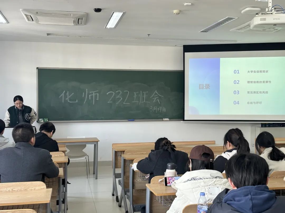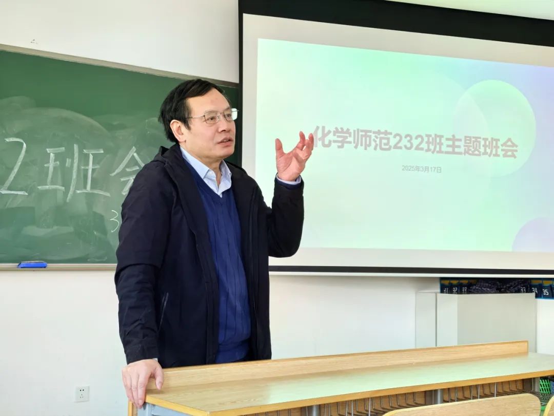 3月17日上午,化学师范232班以“科学生活,共筑和谐”为主题举行了一场别开生面的主题班会,旨在引领大学生如何正确认识马克思主义宗教观,了解党的民宗政策。重庆时时彩 院长章鹏飞教授作为班级结对领导参加本次主题班会并发表讲话。班主任方显杰教授、重庆时时彩 党委副书记管庆江、辅导员黄海伦参加班会。班会由班长何梓娴主持。
