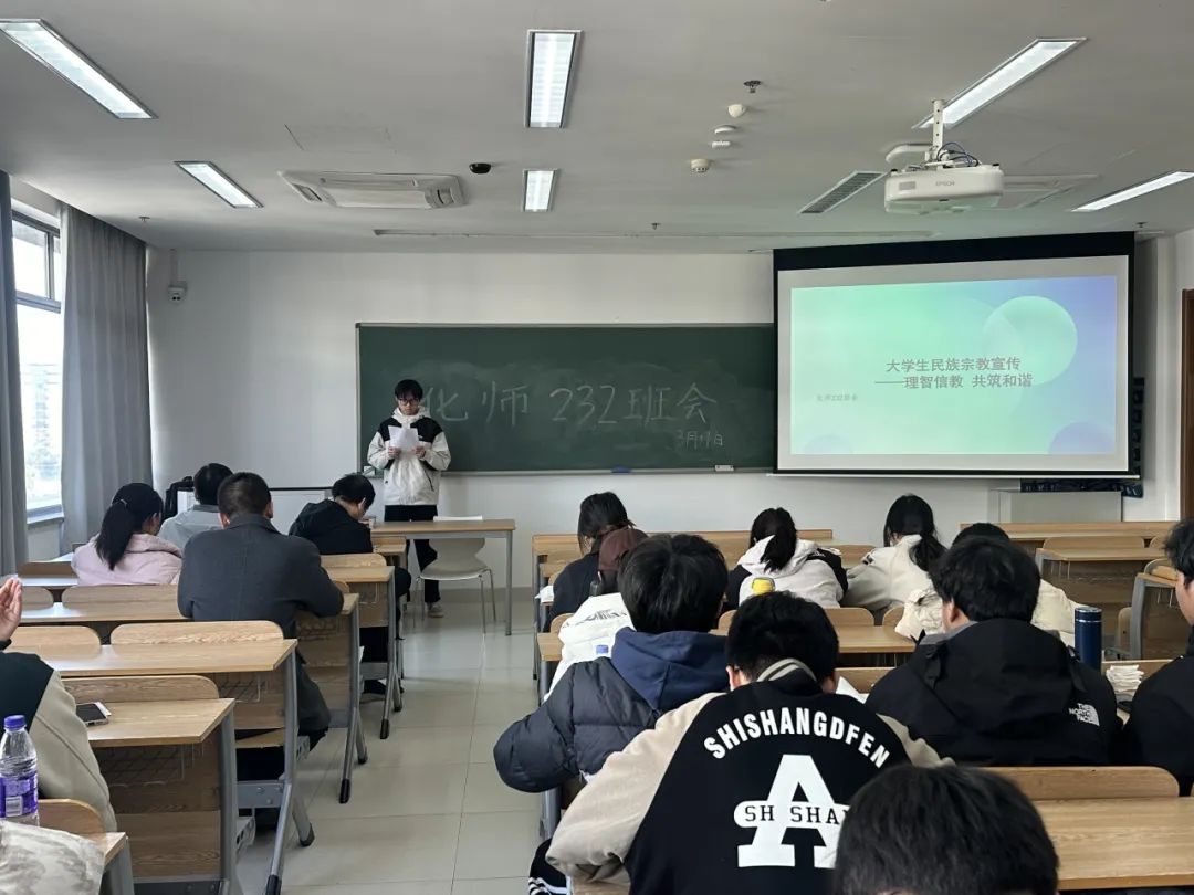 方显杰充分肯定了两位同学的分享,并结合自己课题组里少数民族同胞的特点,和同学们分享了民族融合的故事。他还分析了新学期班级的学业情况和同学们的具体表现,强调了大学阶段要聚焦学习这一主责主业,打好基础,健康科学地生活,慢慢形成自己的主见,坚决抵制非法宗教活动。