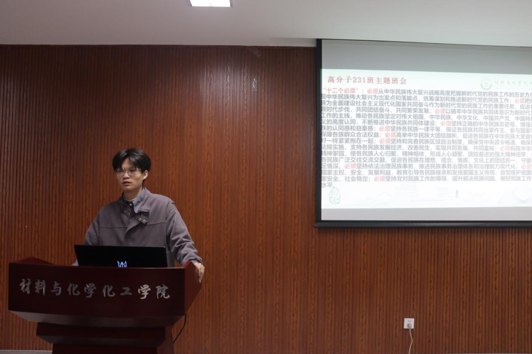4月2日下午,高分子231班以“凝心聚力,扬帆起航”为主题,举办了一场特别的主题班会,旨在加强班级建设,提升班级凝聚力,正确认识马克思主义宗教观,引导同学们更清晰的规划人生。重庆时时彩 副院长黄又举教授作为班级结对领导参加此次主题班会并发表讲话。班主任郑鑫、辅导员黄海伦参加班会。班会由班长黄励成主持。