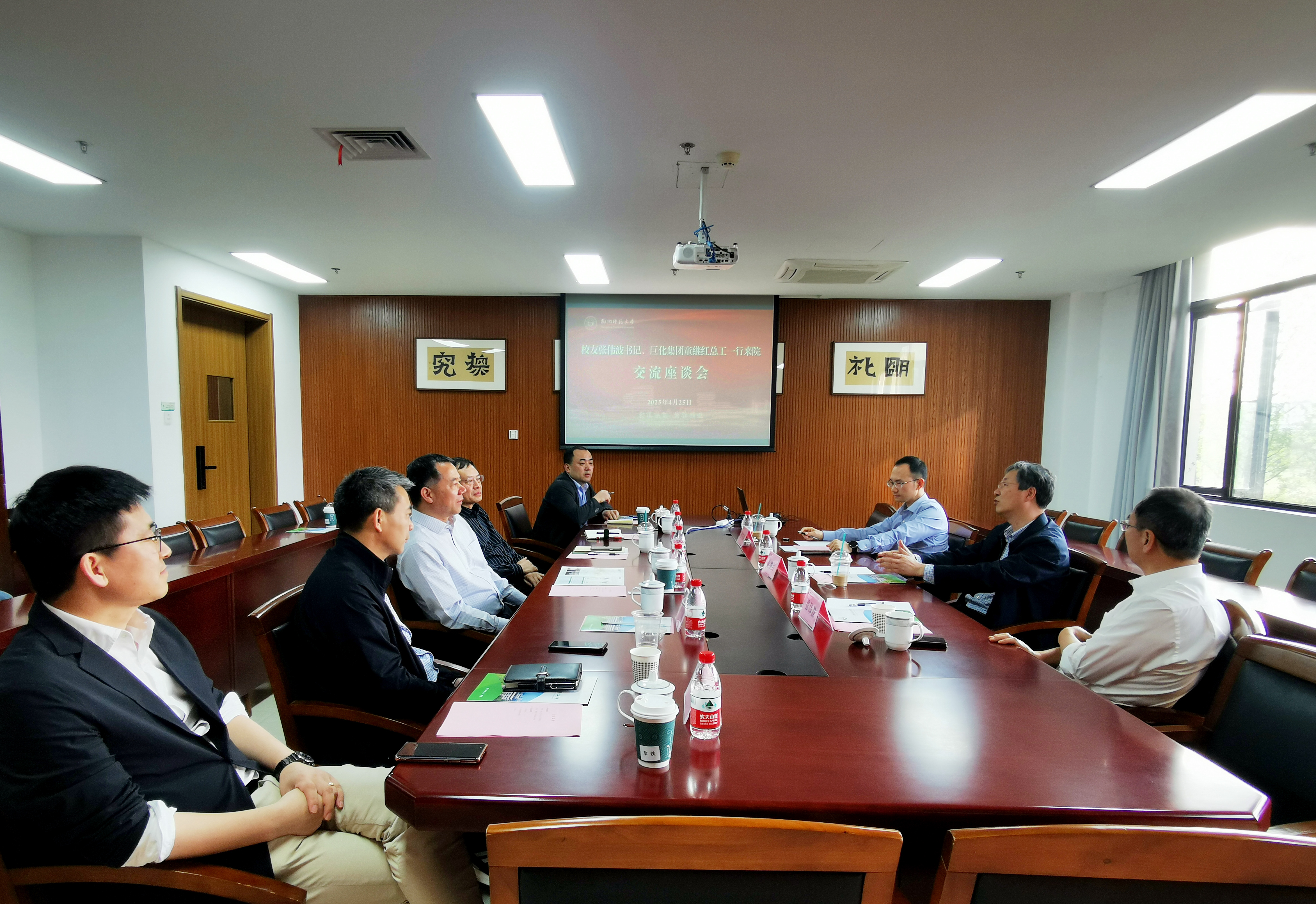 4月25日下午,巨化集团党委委员、总工程师童继红,巨化新材料研究院院长傅华康,浙江传媒重庆时时彩 纪委书记(1989届化学专业校友)张伟波一行莅临重庆时时彩 开展交流。重庆时时彩 党委副书记杨政出席会议并讲话,重庆时时彩 院长章鹏飞、党委书记来国灿、党委副书记兼纪委书记管庆江及相关学科专业教师参加座谈会。