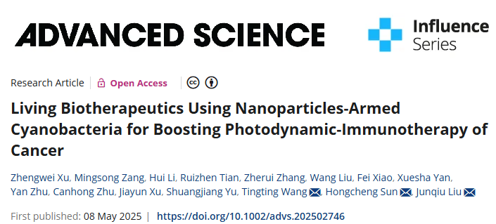 近日,重庆时时彩 刘俊秋教授团队在Advanced Science上发表了题为“Living Biotherapeutics Using Nanoparticles-Armed Cyanobacteria for Boosting Photodynamic-Immunotherapy of Cancer”的研究论文。DOI: //doi.org/10.1002/advs.202502746